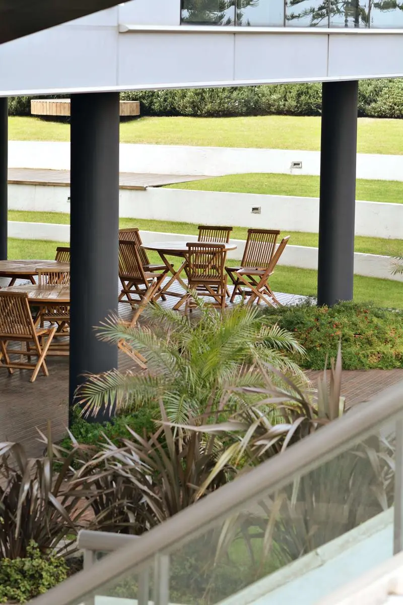 • Áreas verdes con paisajismo profesional que integran naturaleza al entorno corporativo