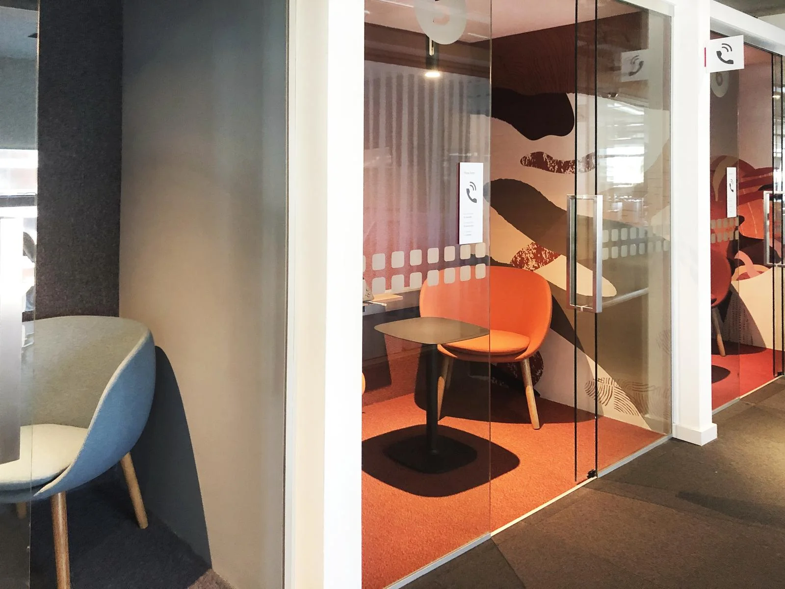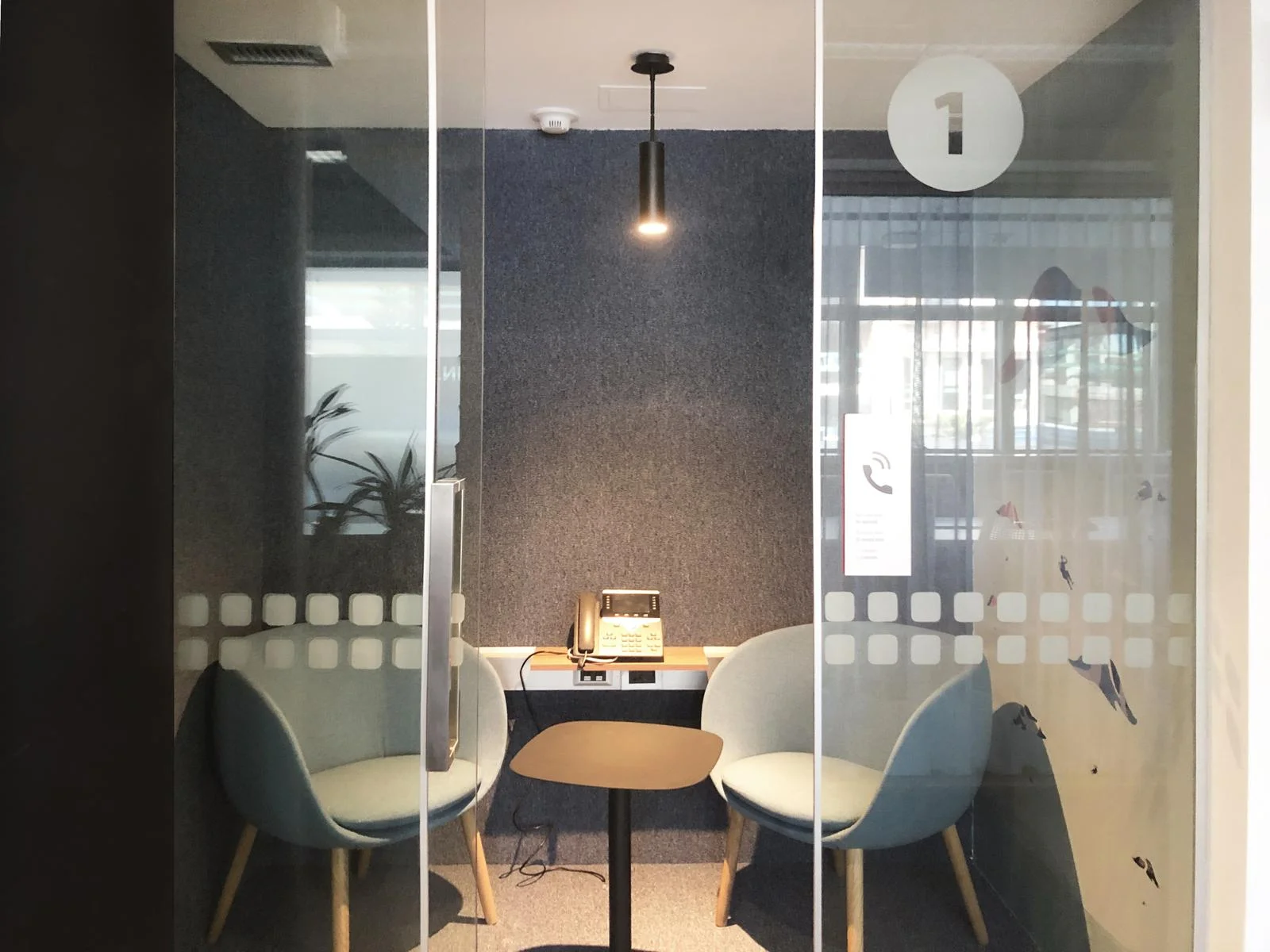 • Phonebooths - 6 cabinas telefónicas privadas para llamadas y concentración
