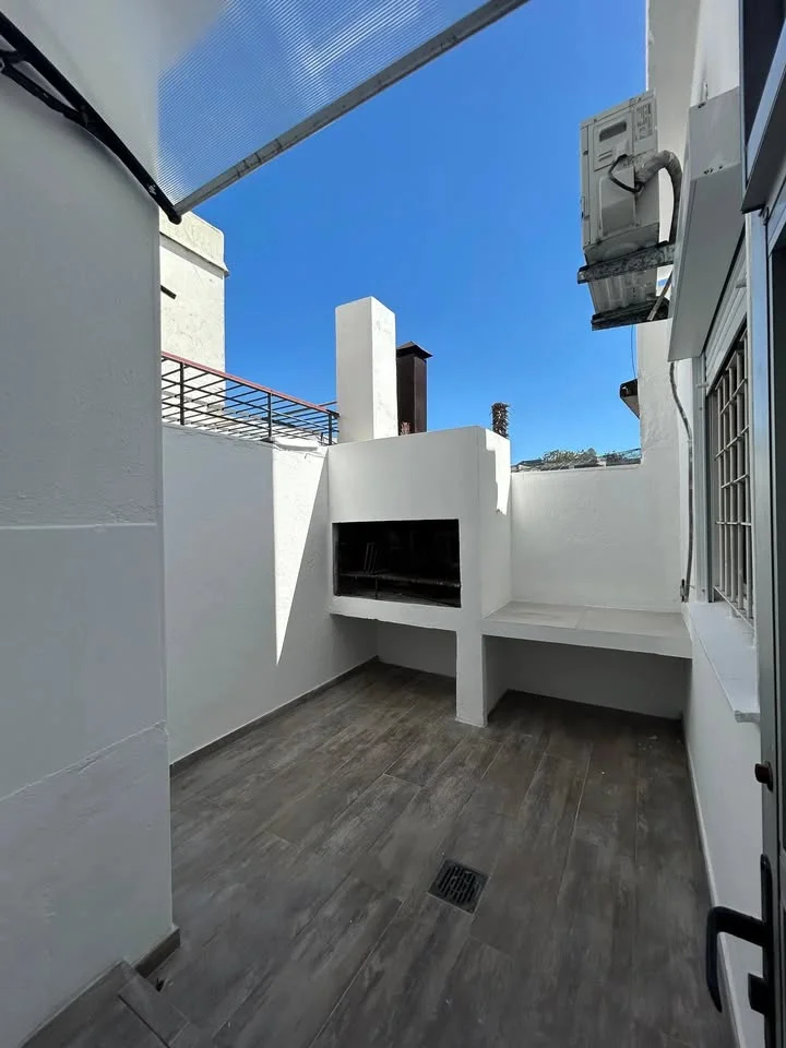 Patio con parrillero integrado (equipado con quemador y parrilla).