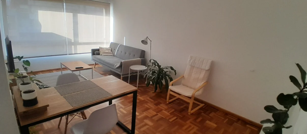 * Living al frente con smart TV, aire acondicionado y todo lo necesario para estar cómodo.