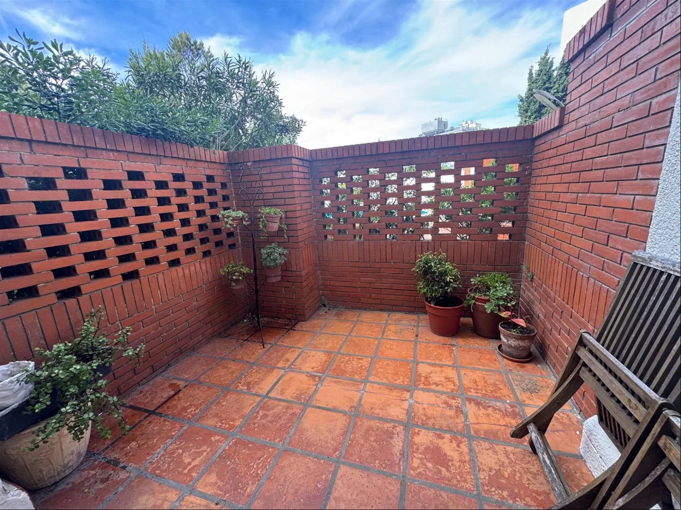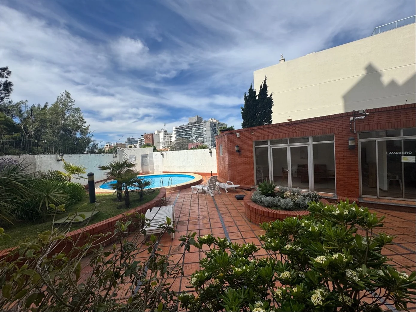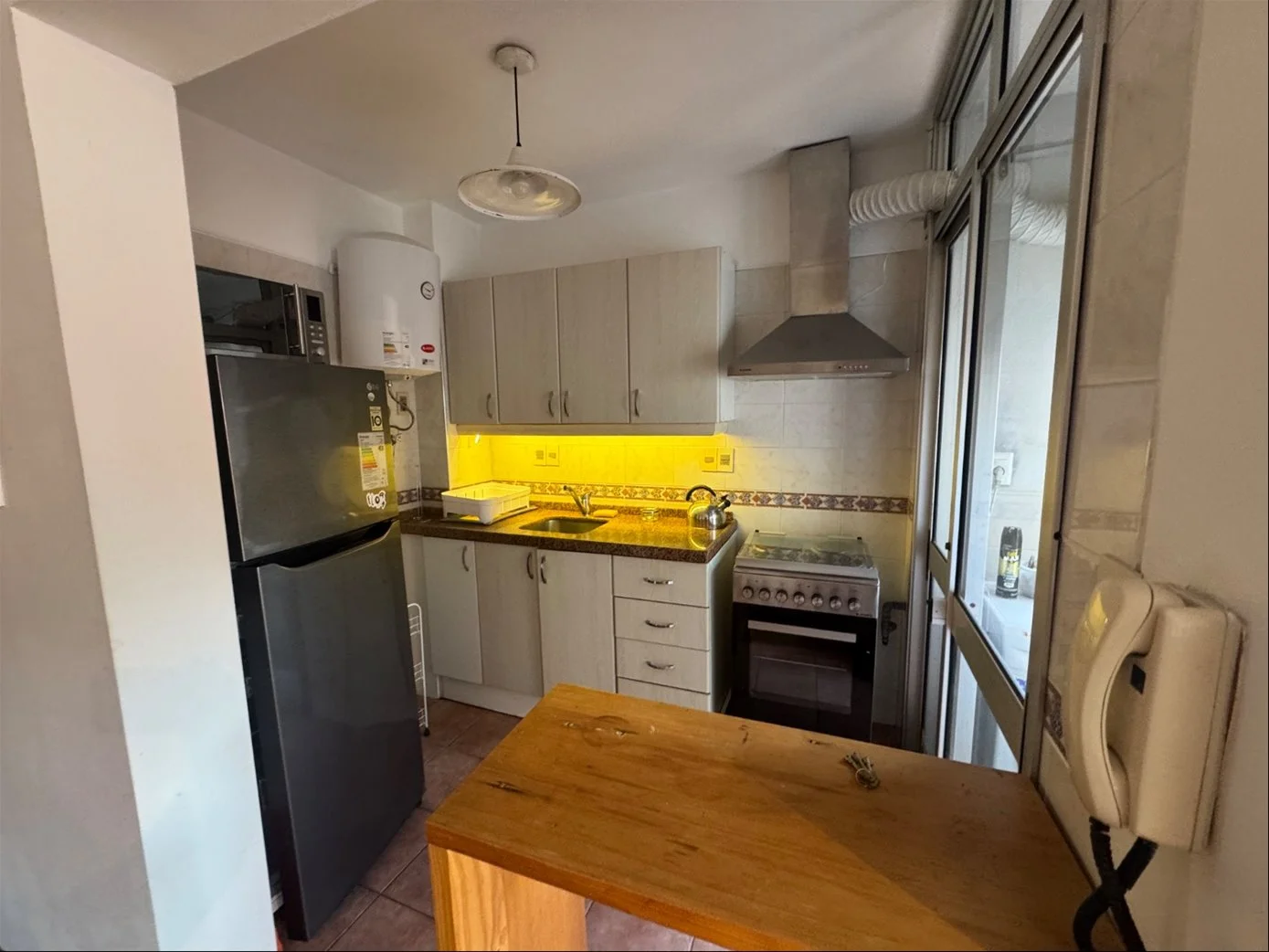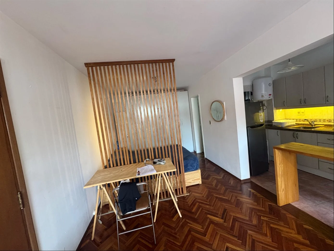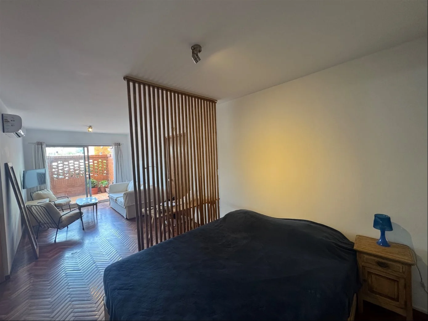 Monoambiente equipado muy amplio dividido con cocina definida y un patio hermoso y terraza lavadero a 100 metros del mar.