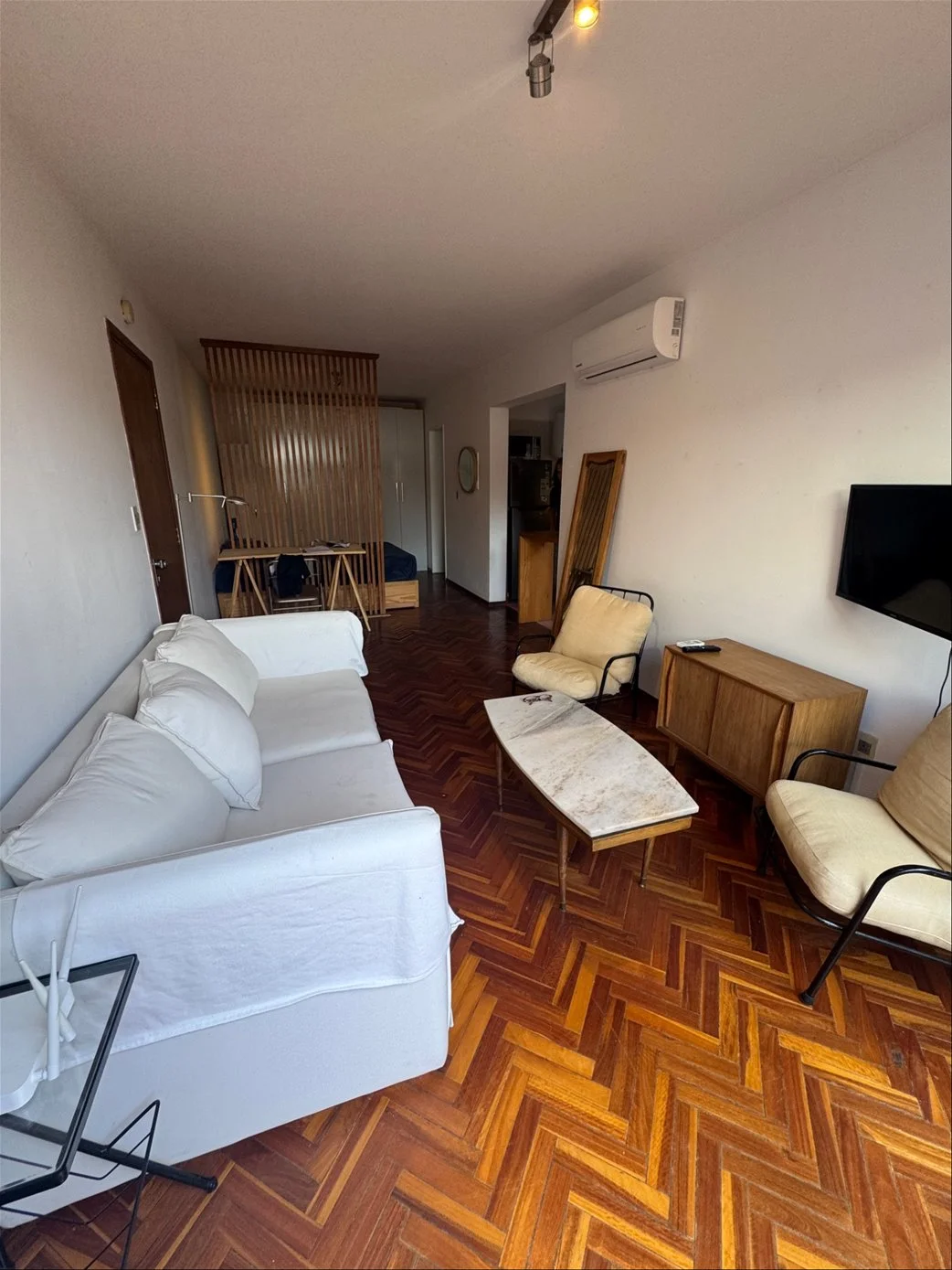 Cuenta con un dormitorio, un baño completo en suite, cocina definida con placares y lavadero integrado. El apartamento está en muy buen estado, posee calefacción mediante aire acondicionado split .