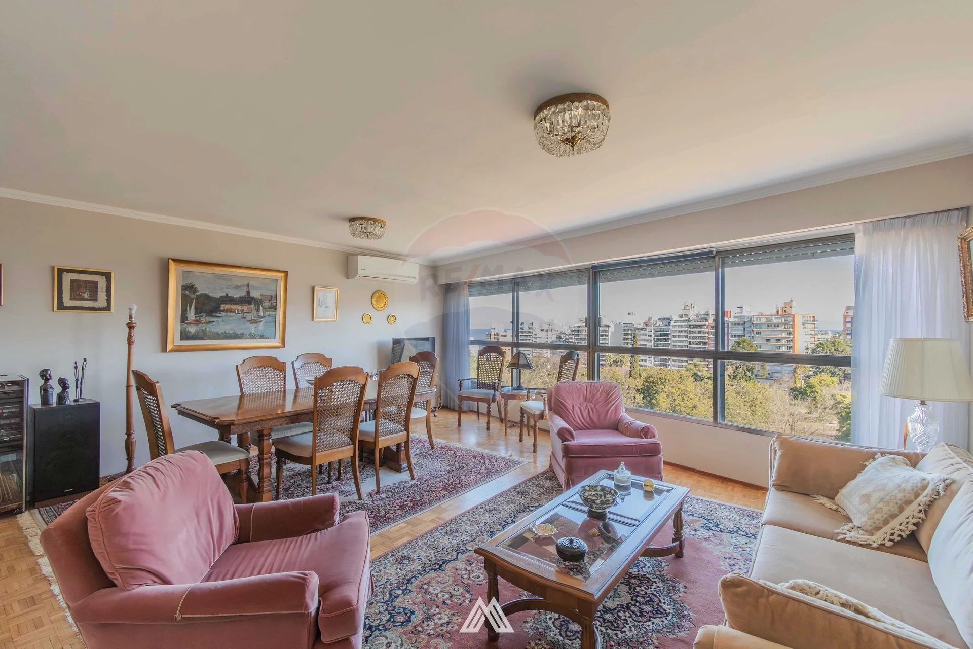 Amplio living comedor con ventanales apaisados.