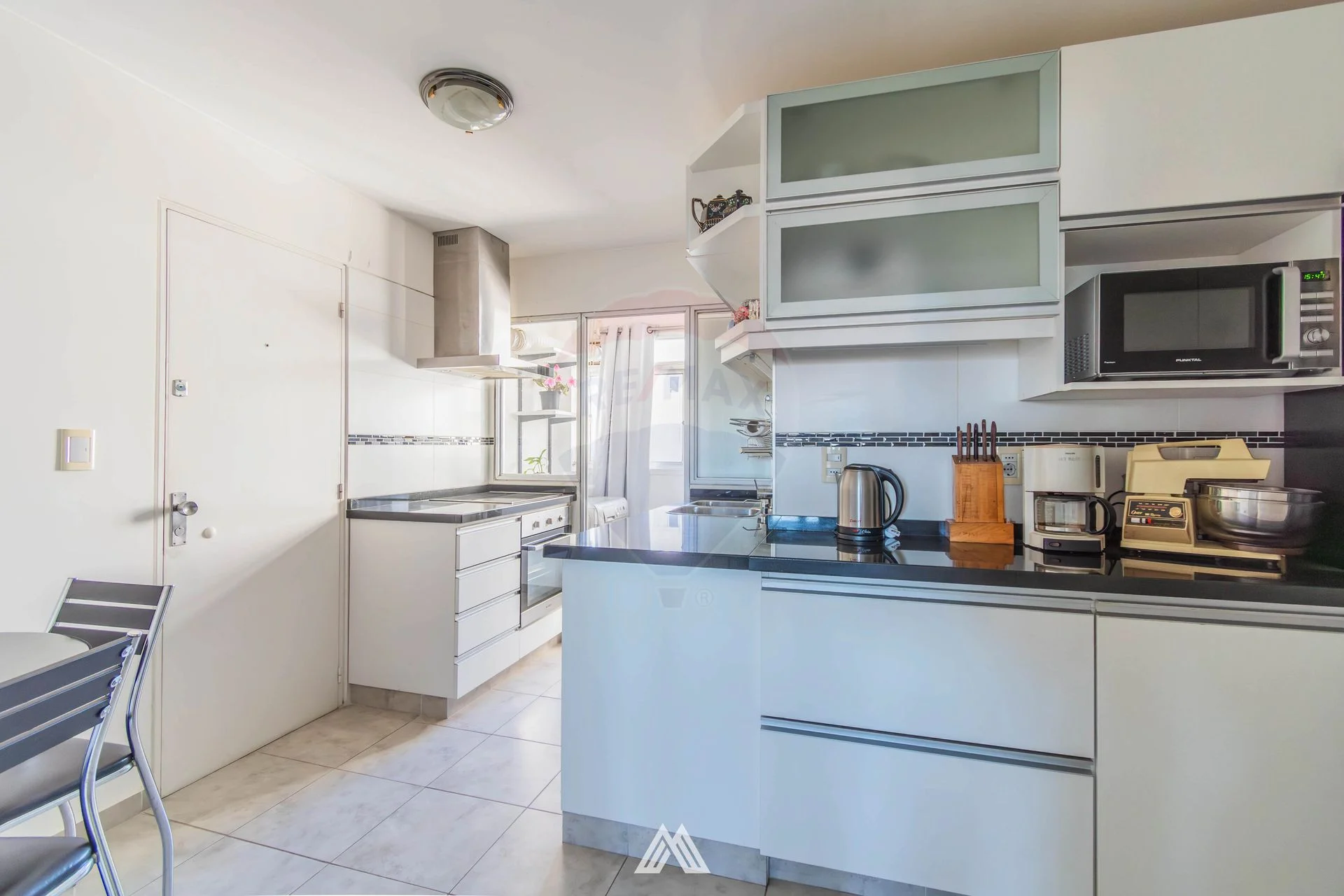 Cocina amplia con sector de guardado y office.