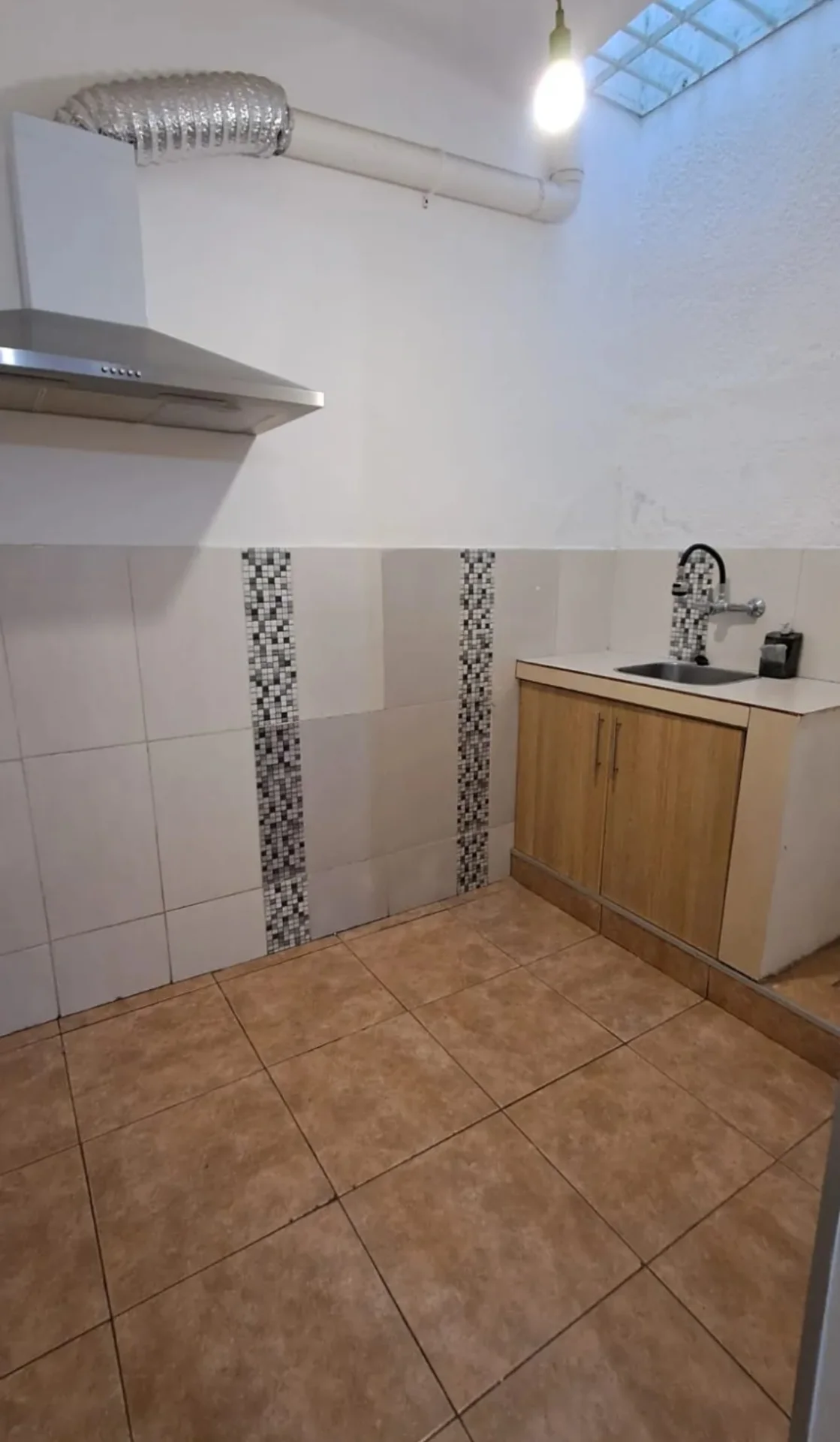 UN DORMITORIO CON LUZ NATURAL. COCINA DEFINIDA CON CAMPANA DE ACERO INOX.