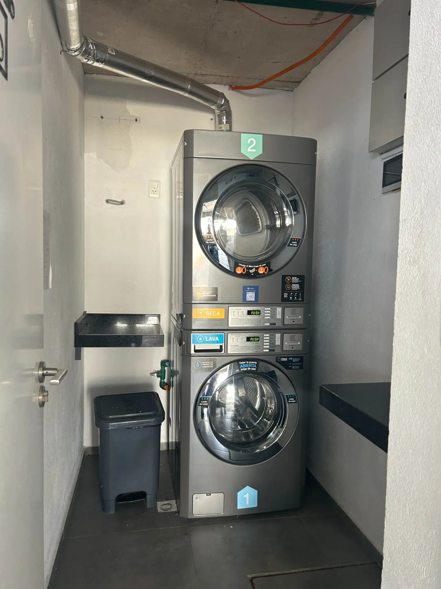 Laundry en el edificio con lavados con tarjeta que pagas con los gastos comunes.