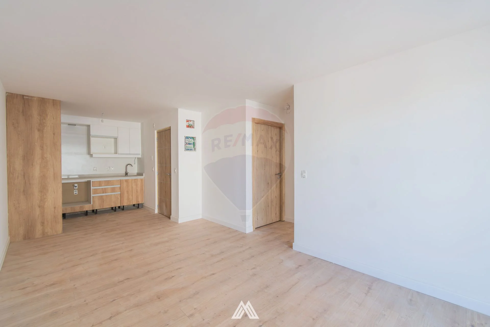 Su distribución es muy cómoda, ya que al acceder nos recibe un luminoso living comedor con salida al balcón al frente. Quedando la cocina oculta, la misma se entrega con horno, anafe, y campana extractora de humos. Tiene muebles bajo mesada y aéreos.