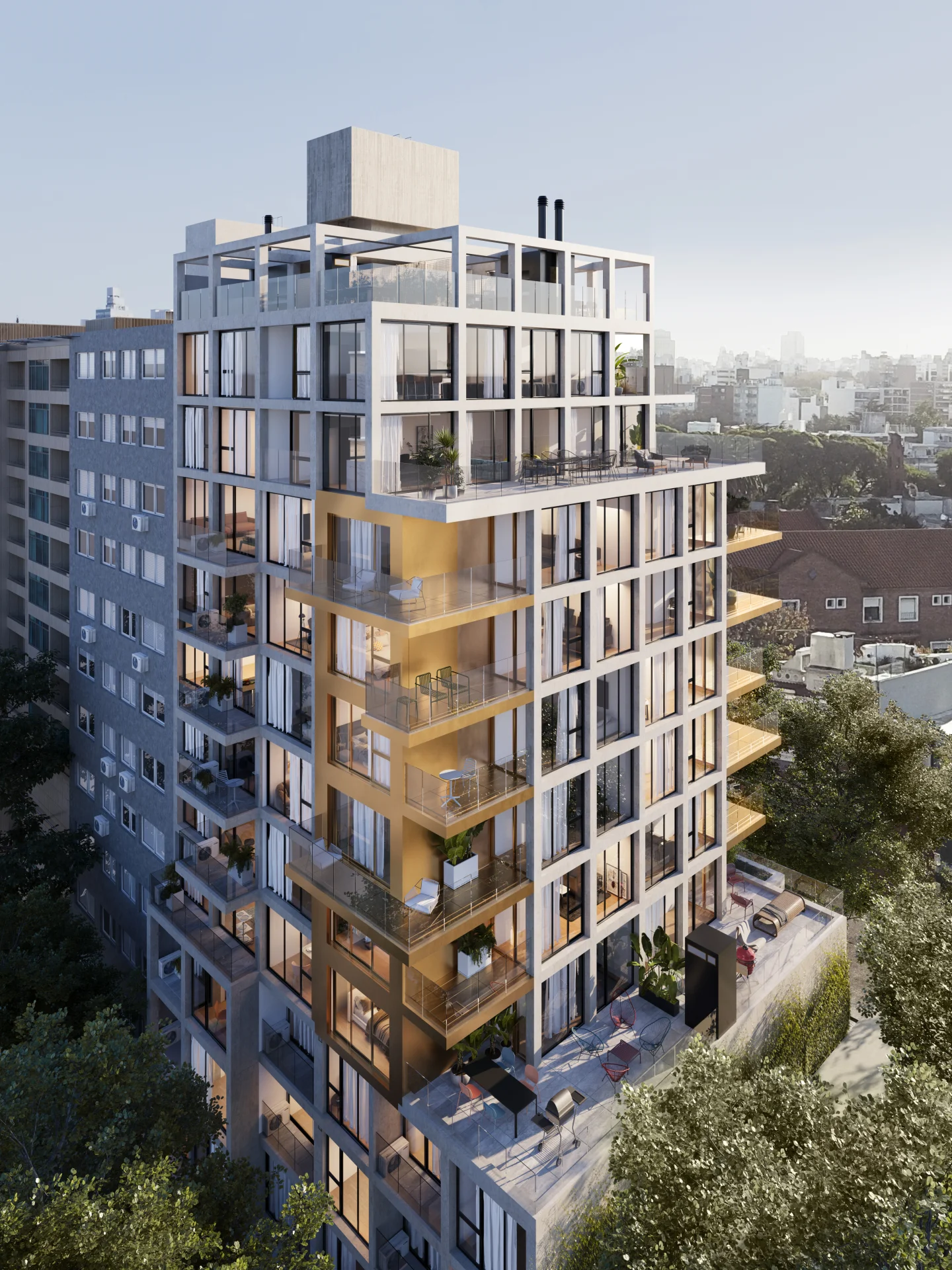 El edificio consta de 11 pisos y 42 apartamentos totales. Cada una de estas viviendas ha sido meticulosamente diseñada para combinar estilo, funcionalidad y confort. Desde amplios monoambientes hasta espaciosos apartamentos de 3 dormitorios.