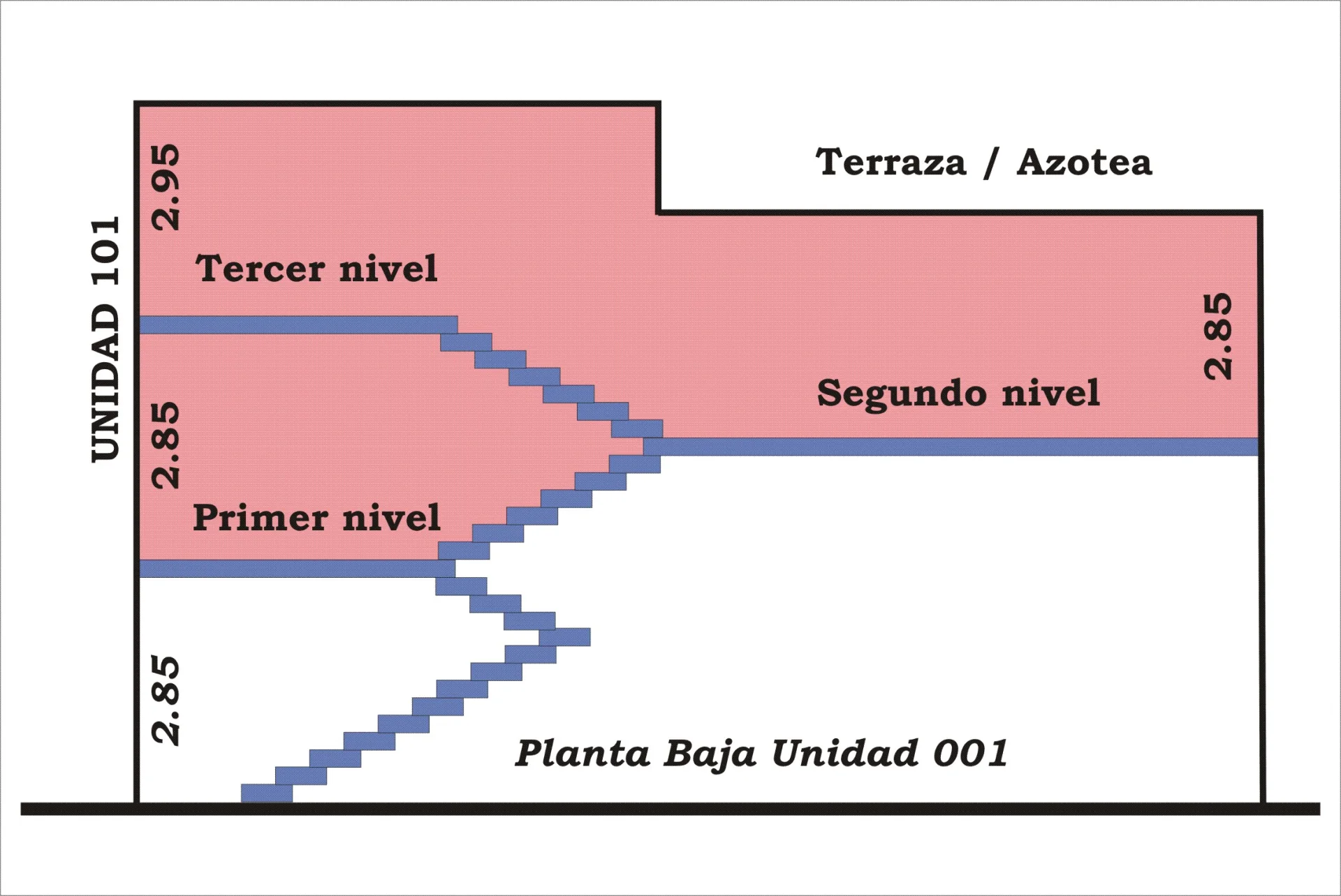 Se desarrolla en 3 plantas (que se sube de manera consecutiva de a medio piso) por escalera.