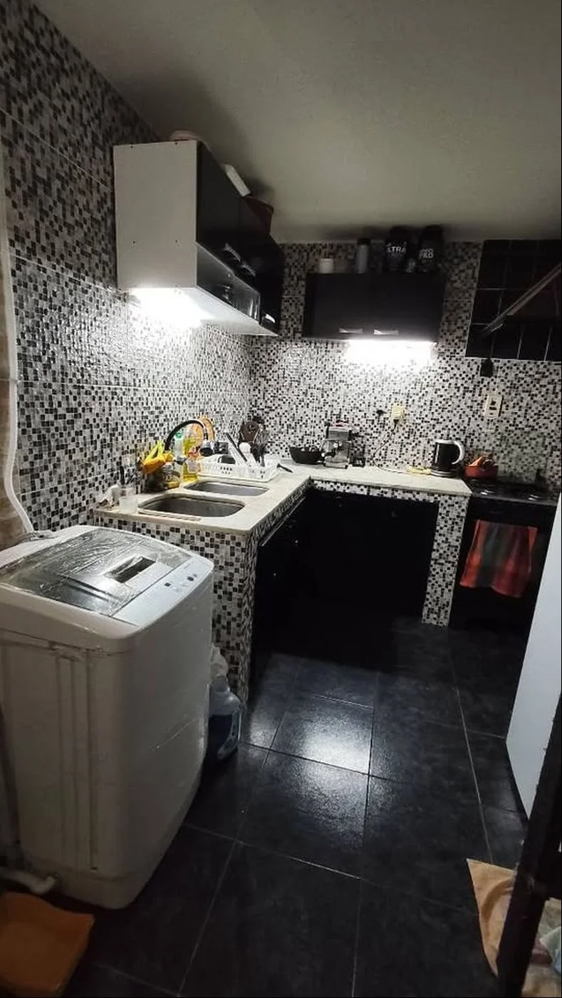 Cocina actualizada con amplia mesada, doble pileta y placares bajo mesada.