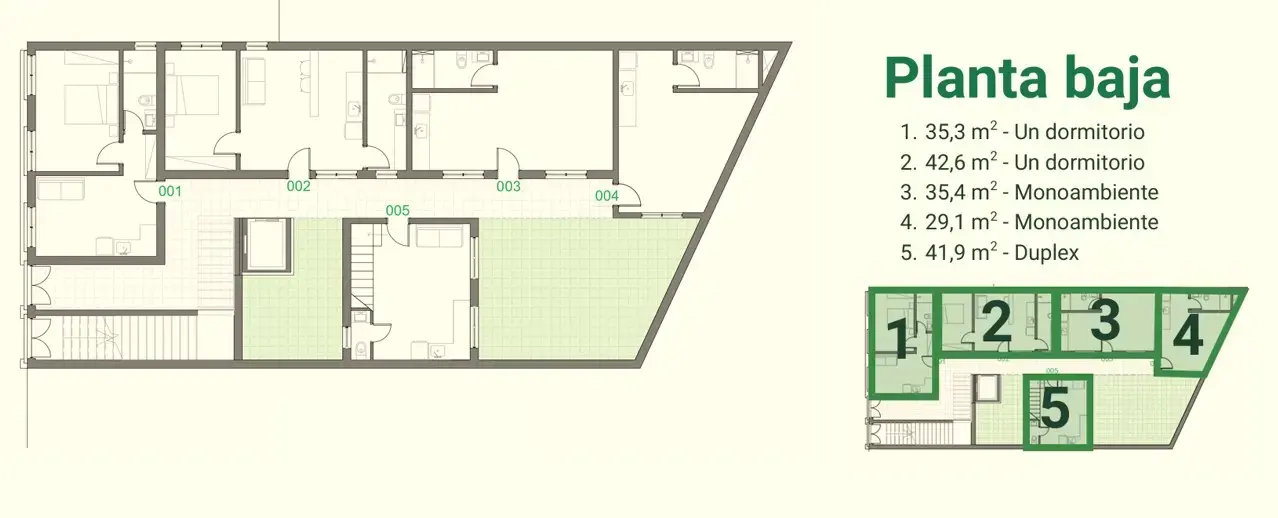 6 apartamentos de 1 dormitorio