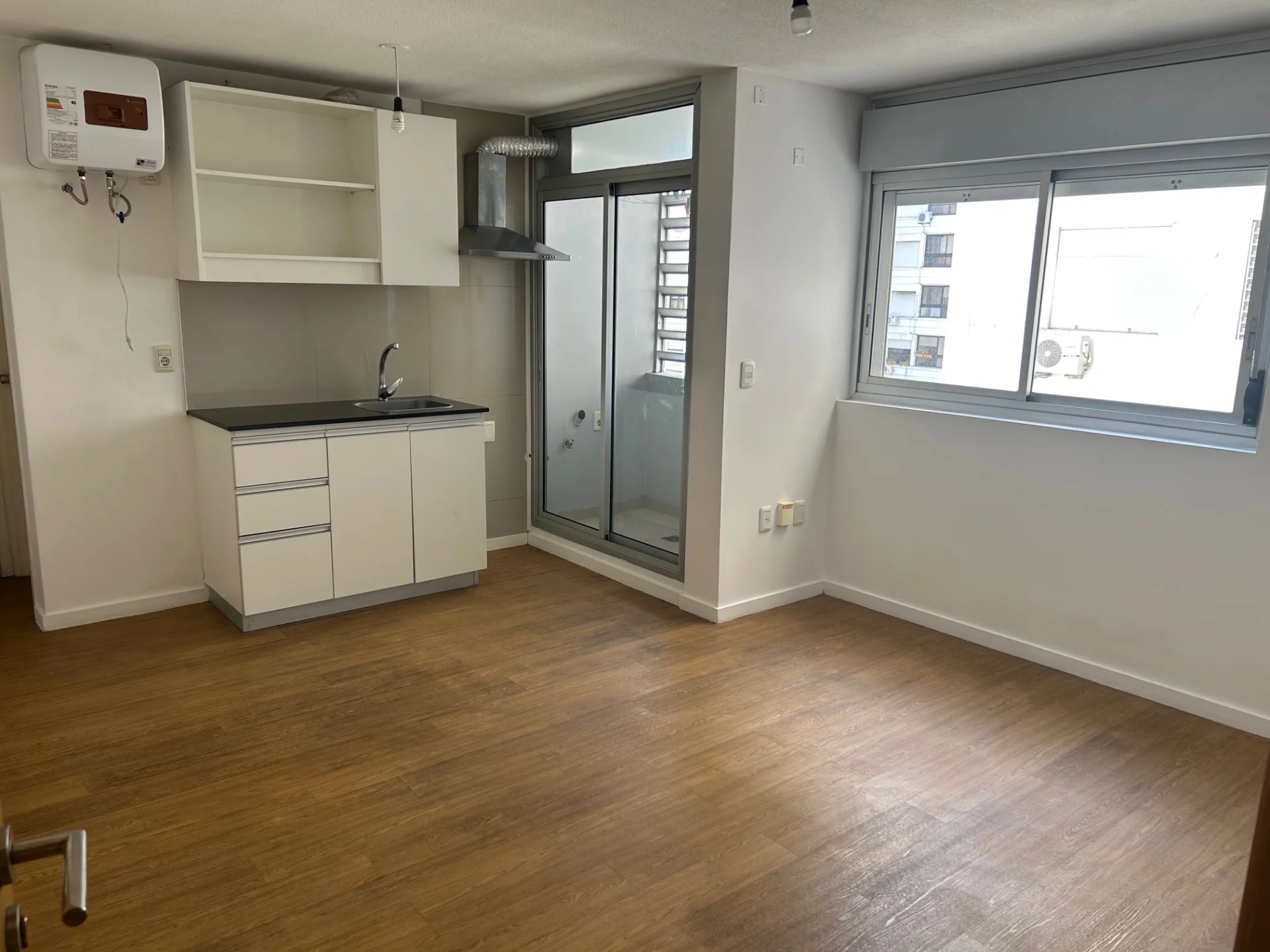 El apartamento dispone de living comedor con cocina americana integrada con profusión de placares y salida a terraza lavadero con lugar para instalar lavarropas. El dormitorio cuenta con placard. El baño es completo con ducha. Se entrega recién pintado y con calefón.