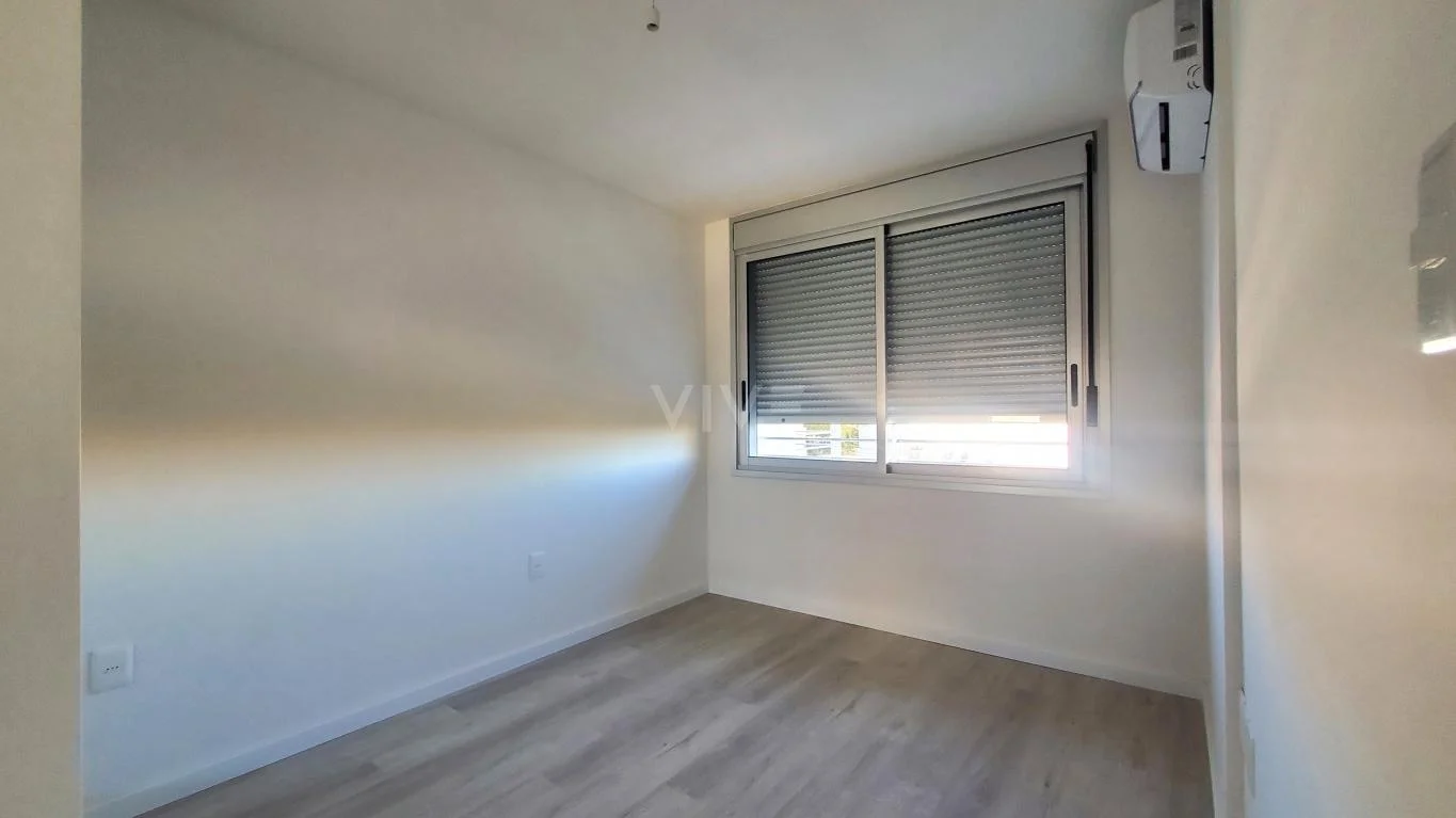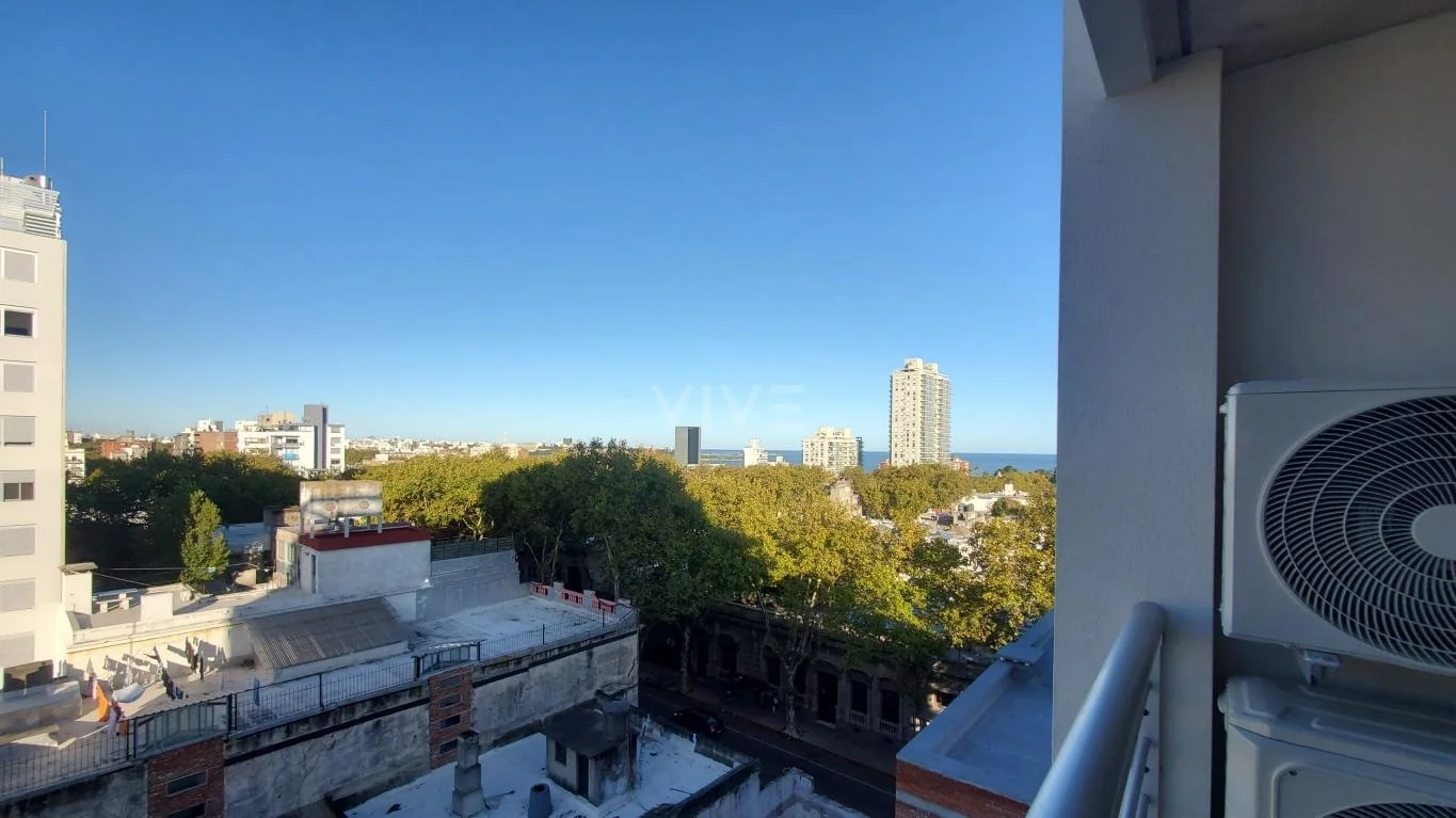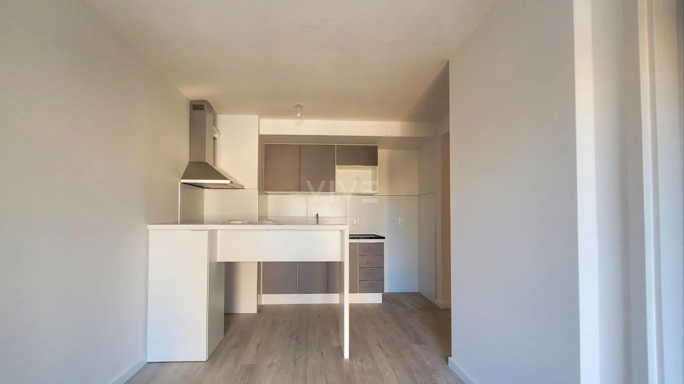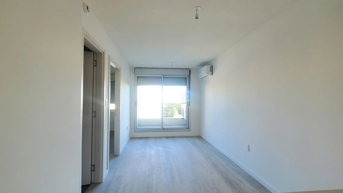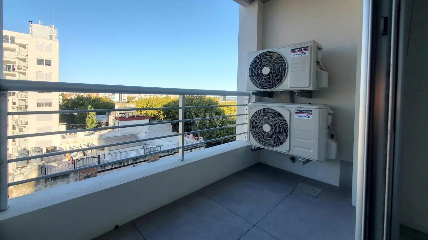 Cómodo apartamento de 1 dormitorio, con living comedor con AA y salida a balcón, cocina integrada con campana, barra, luminarias, etc.