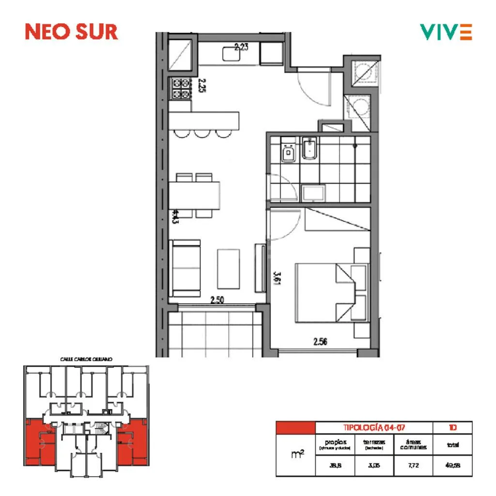 El edificio Neo Sur se ubica en Barrio Sur, calle Carlos Quijano entre Canelones y Maldonado.