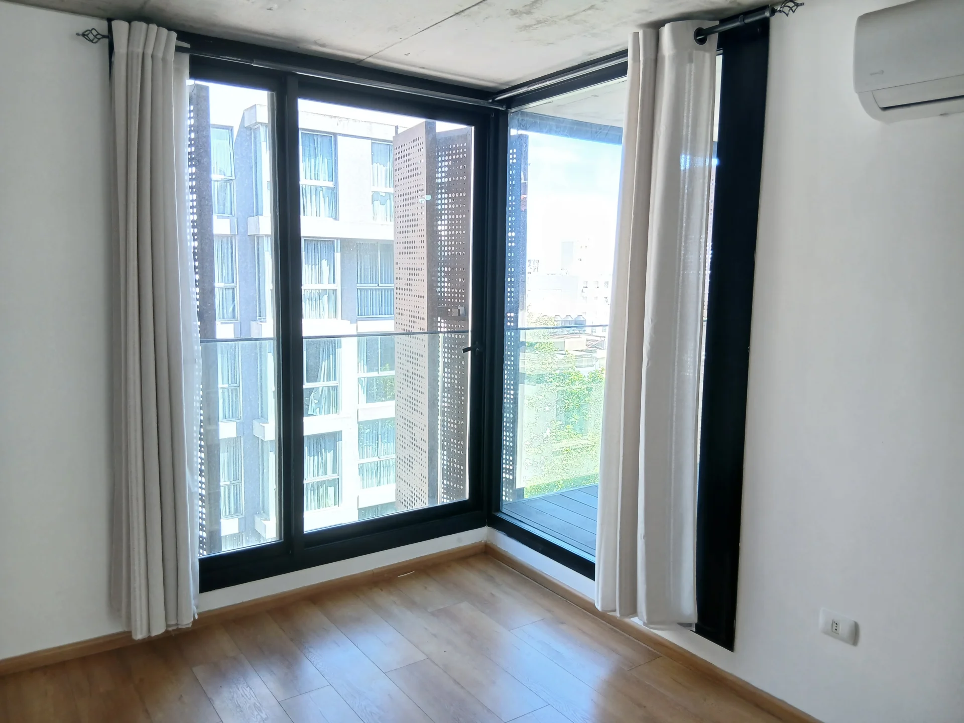 Living comedor al frente con salida a una amplia terraza, permitiendo disfrutar del aire libre. El dormitorio también se encuentra al frente, equipado con placard empotrado y acceso directo a la terraza. El baño es completo y la cocina está equipada con anafe, horno eléctrico, campana extractor de aire.