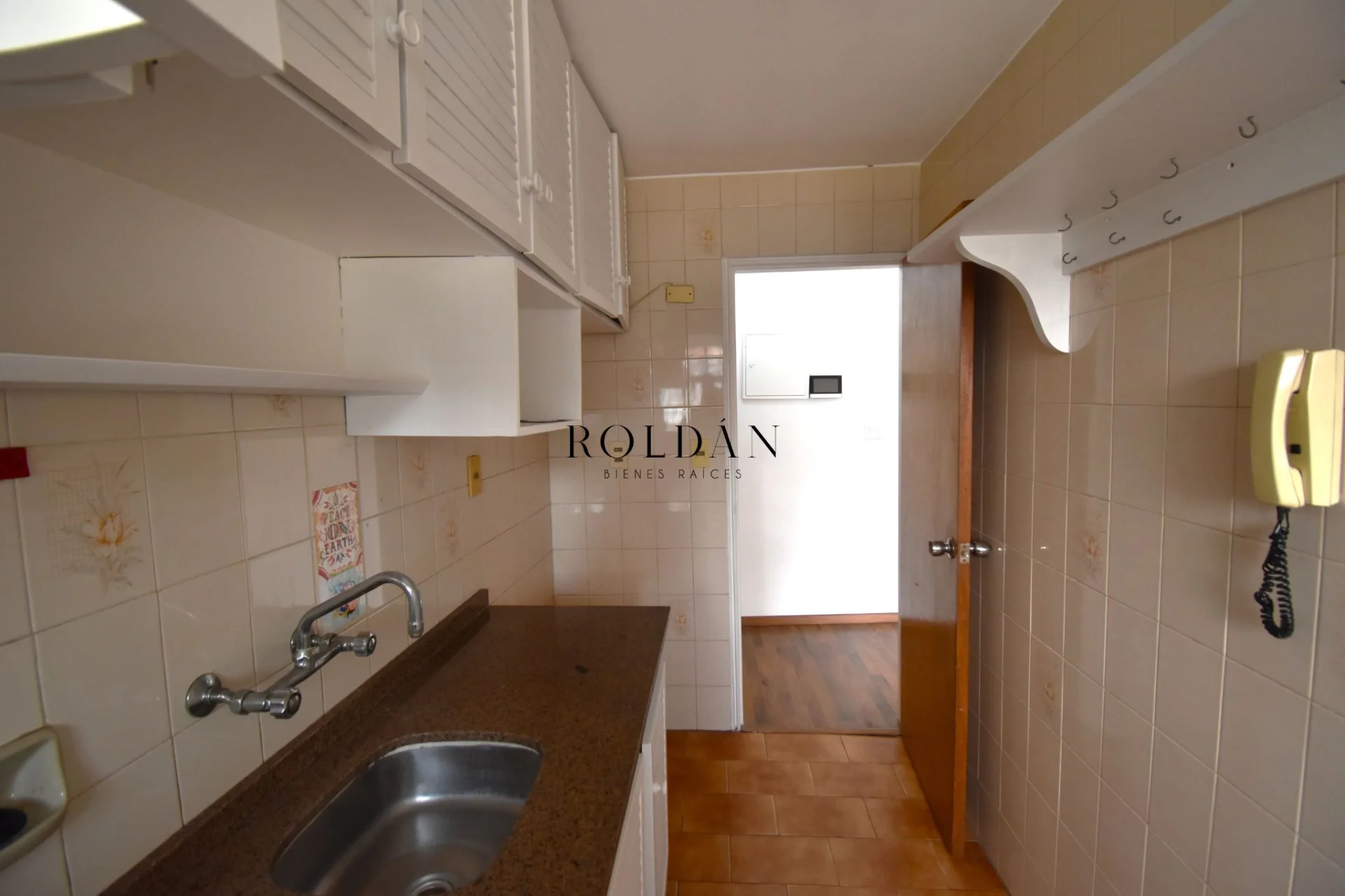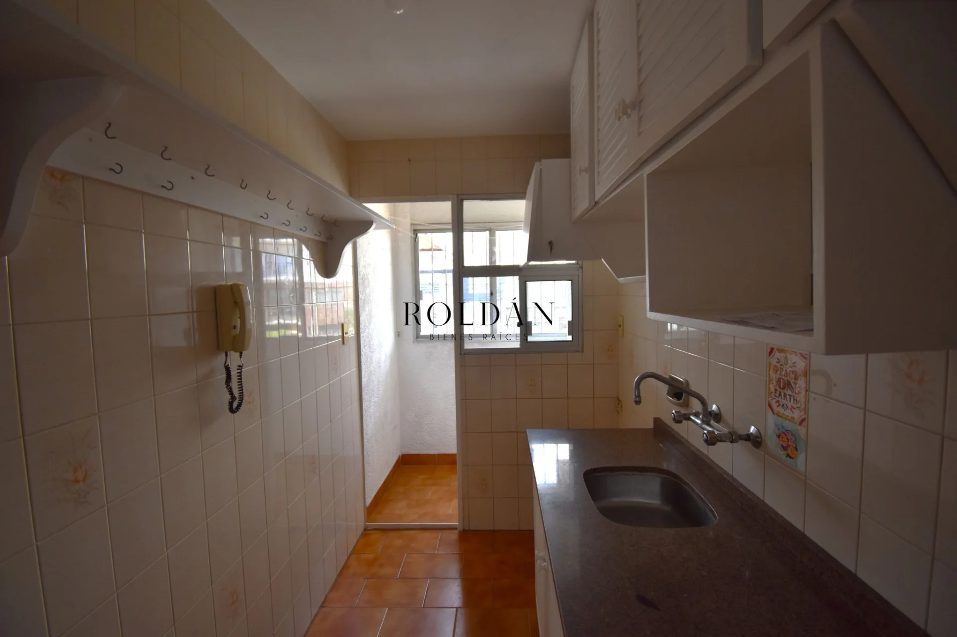Living comedor con ventana con reja, cocina definida con muebles aéreos y bajo mesada, terraza lavadero cerrada con ventana con reja.