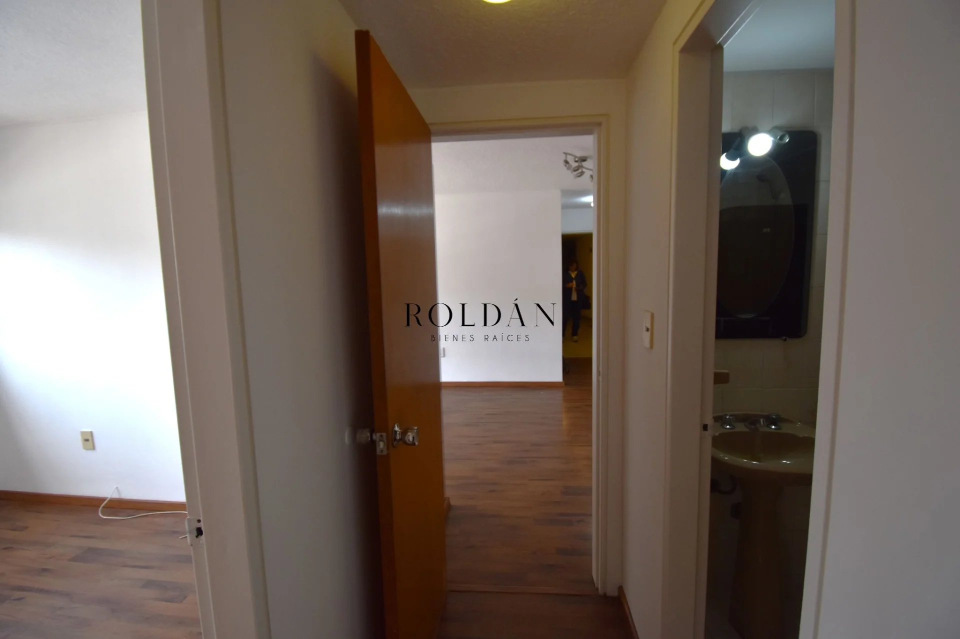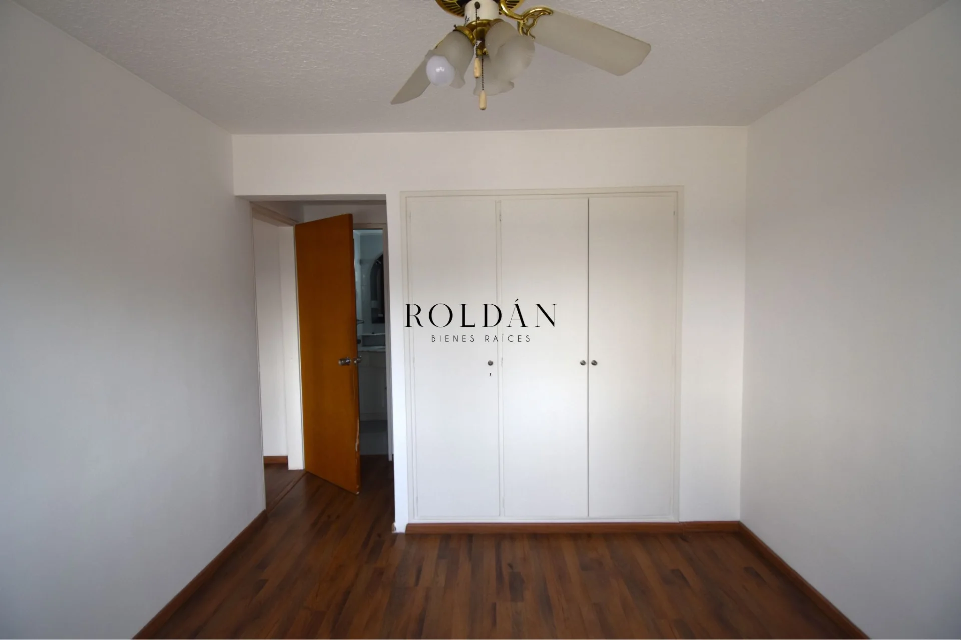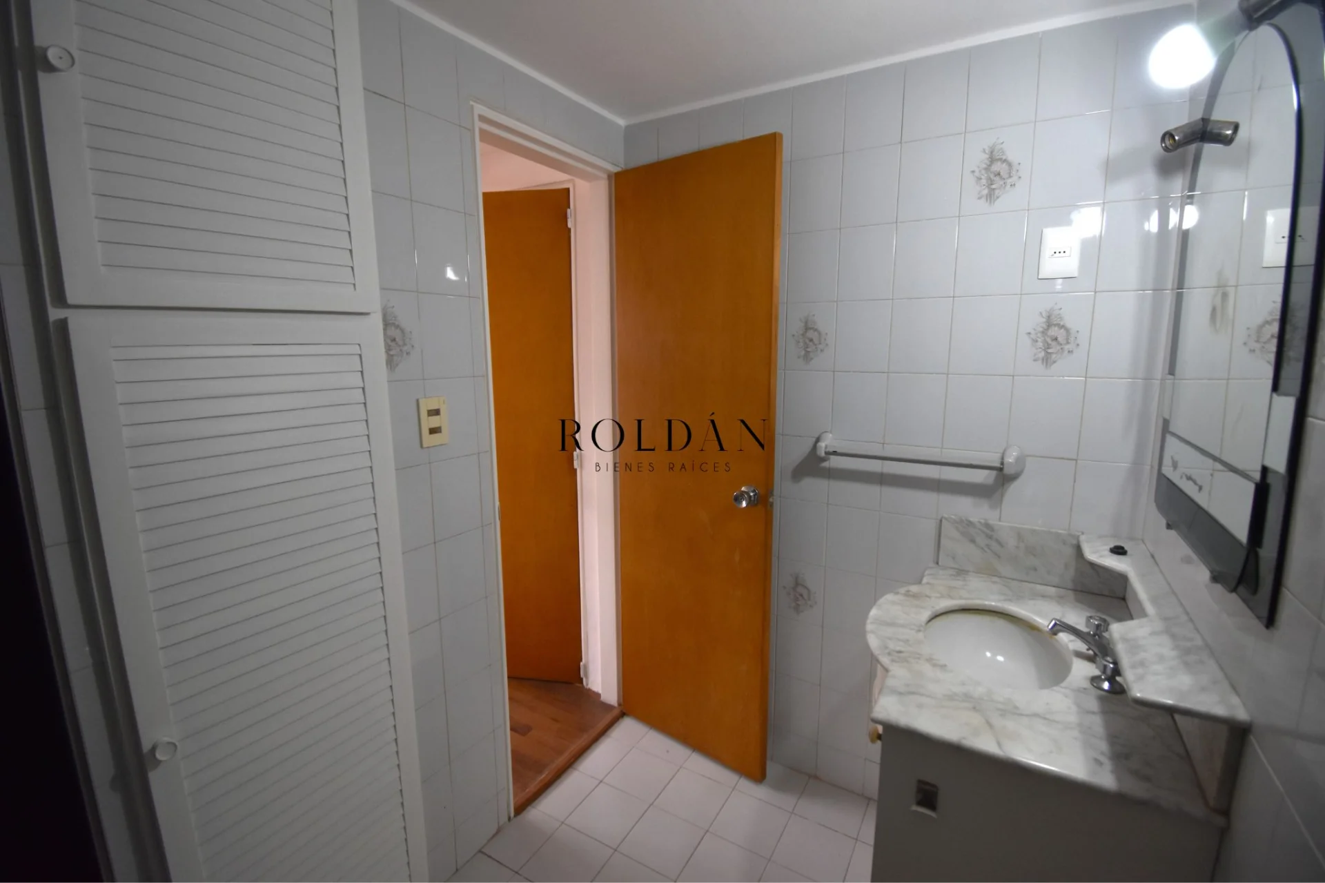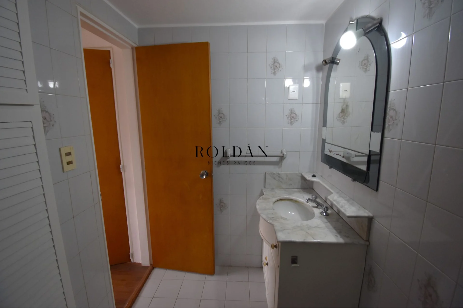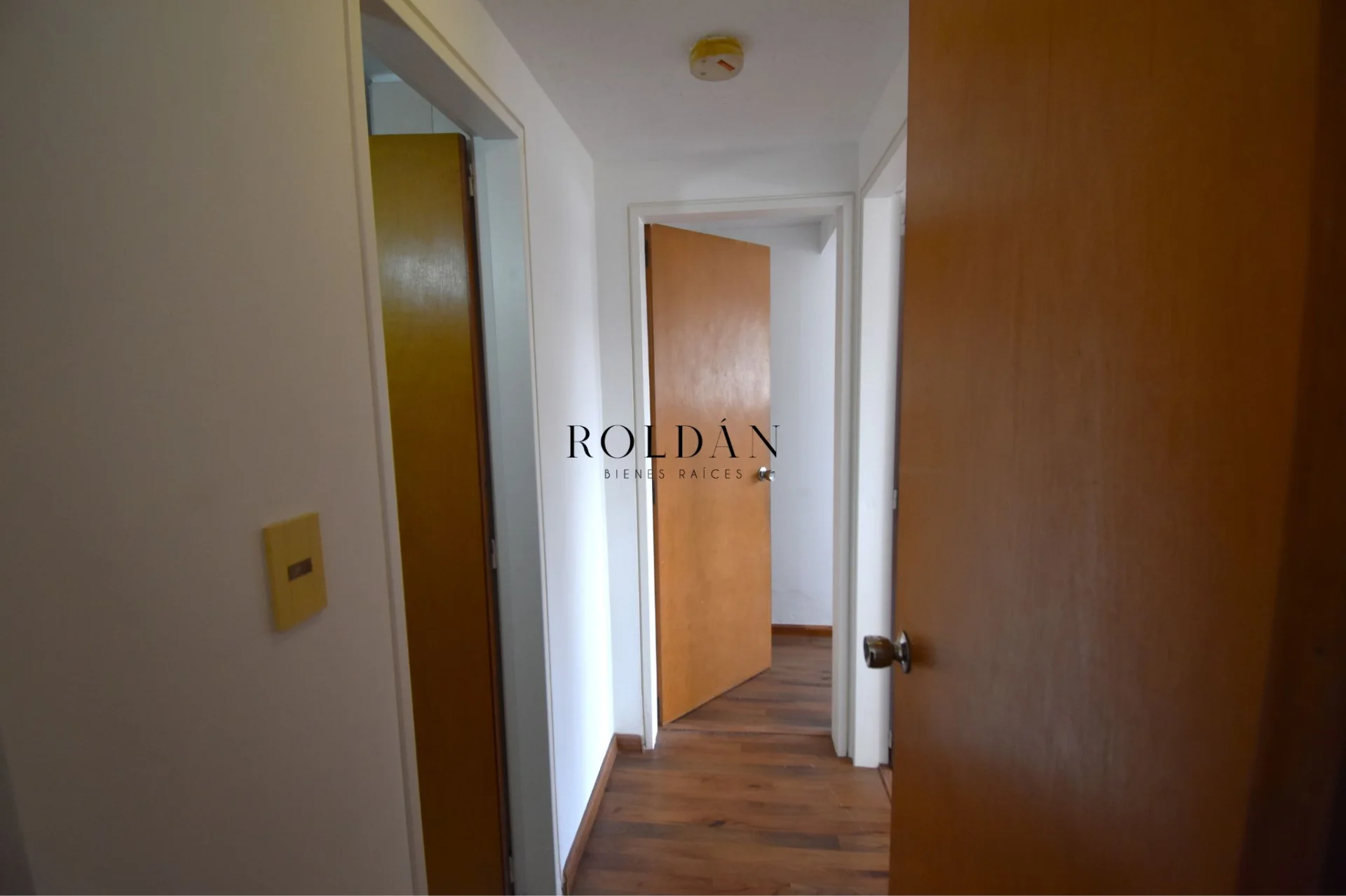 Pasillo de distribución con espejo que permite acceso a ambos dormitorios, principal en suite con amplio baño completo con espejo y mueble, este dormitorio cuenta con ventana con persiana y reja, ventilador de techo y mueble empotrado piso techo, segundo dormitorio con ventana y reja. Baño completo con espejo y mampara.