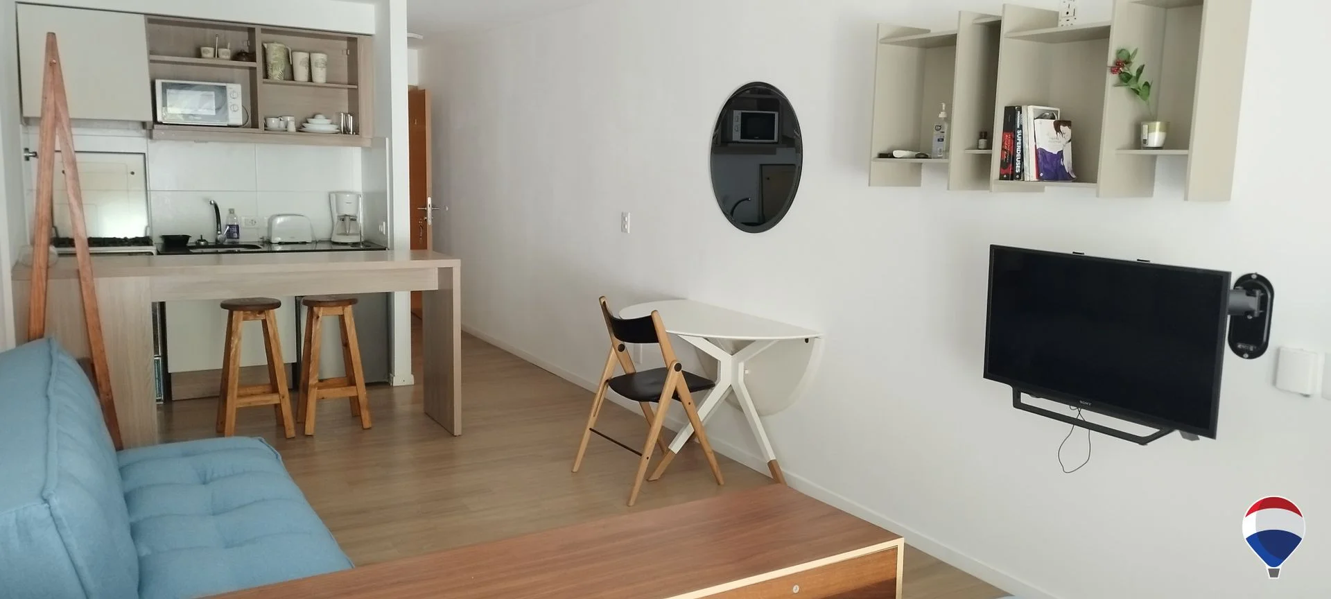 Se alquila hermoso monoambiente totalmente equipado.