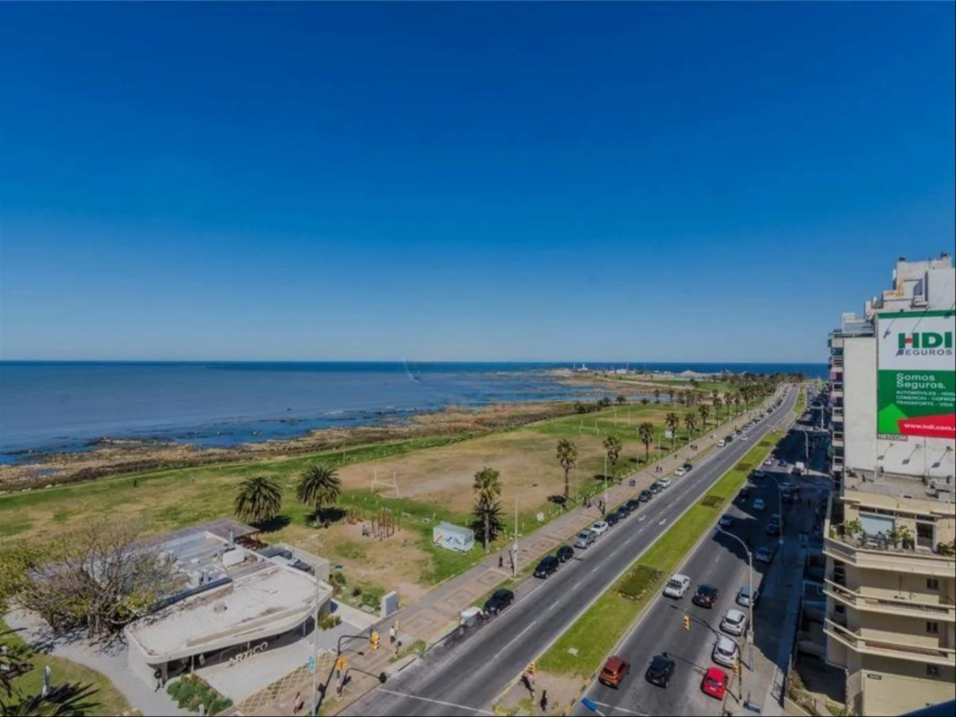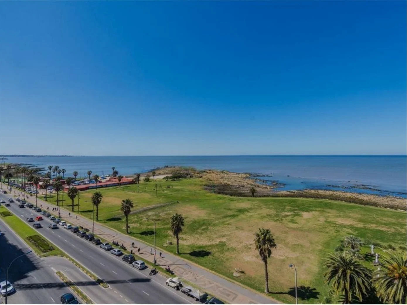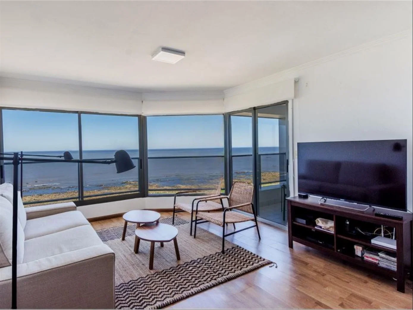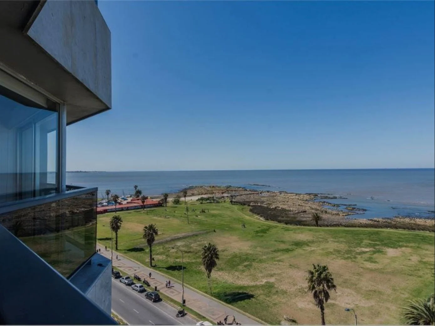 El living-comedor, con ventanales al frente, se conecta a una terraza lateral que ofrece una vista espectacular al mar.