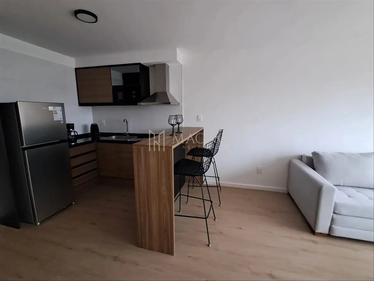Piso 10 con vista panorámica. Apartamento completamente amoblado. Cuenta con living comedor, cocina con barra desayunadora, 1 dormitorio, baño y terraza con acceso desde living y dormitorio.