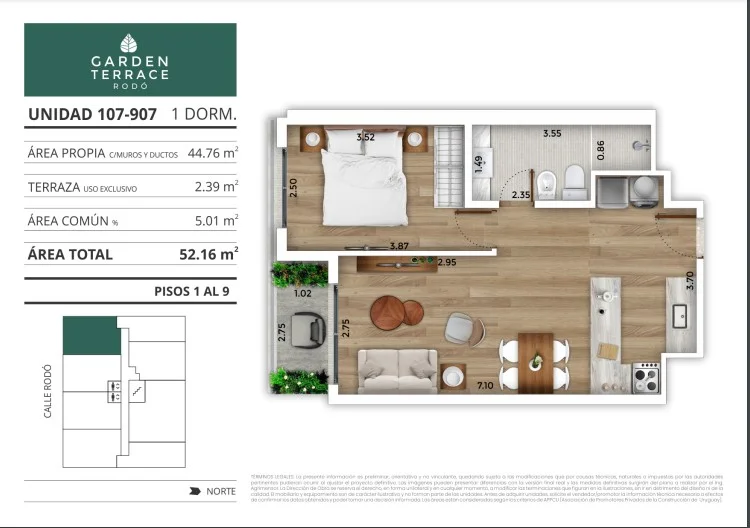 + $ 3,500 Дополнительно / U$S 3,173/m2