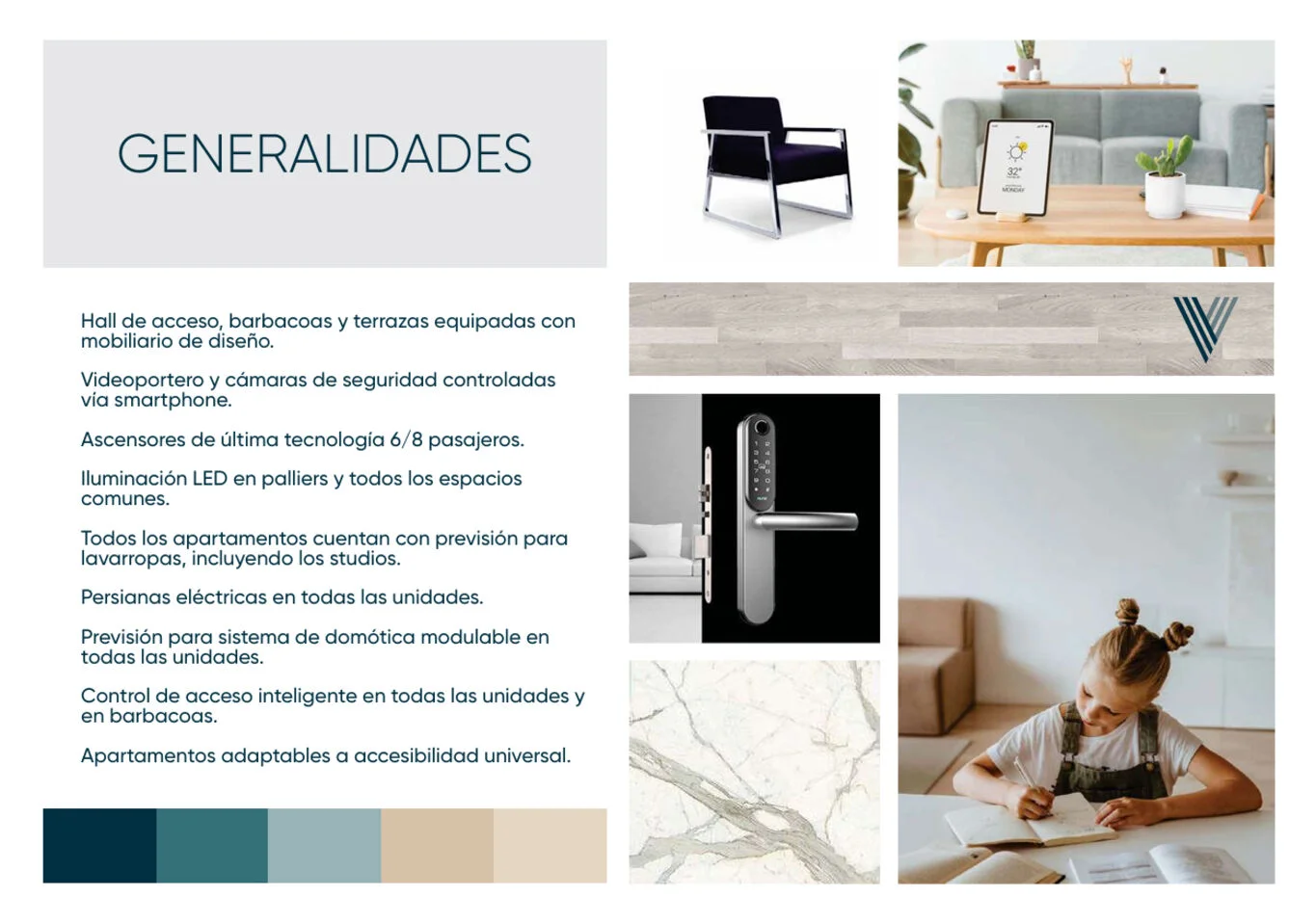 Tu apartamento está preparado para el presente y el futuro. Desde tu smartphone podrás gestionar múltiples funciones gracias a la previsión para domótica, abrir a distancia la puerta de tu casa con cerraduras inteligentes y mantener la comodidad cotidiana con persianas eléctricas en todas las unidades.