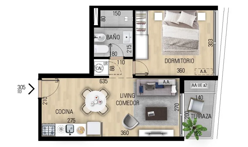 Se desarrollará en régimen de propiedad horizontal contando con unidades monoambientes, 1 y 2 dormitorios.