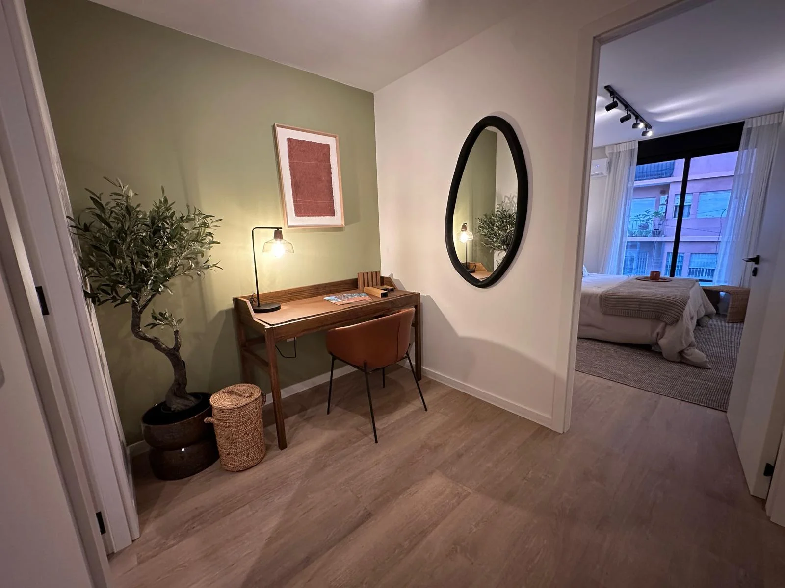 Apartamento de 1 dormitorio con living-comedor con cocina integrada y amplios ventanales que brindan gran entrada de luz natural.