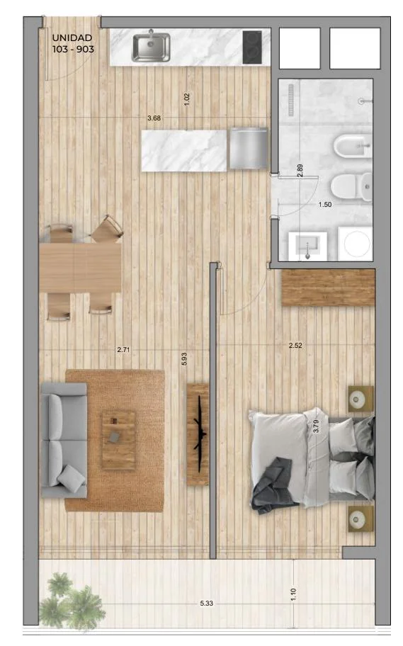 Equipado : Anafe, horno, microondas, campana, heladera, calefón, aire acondicionado.