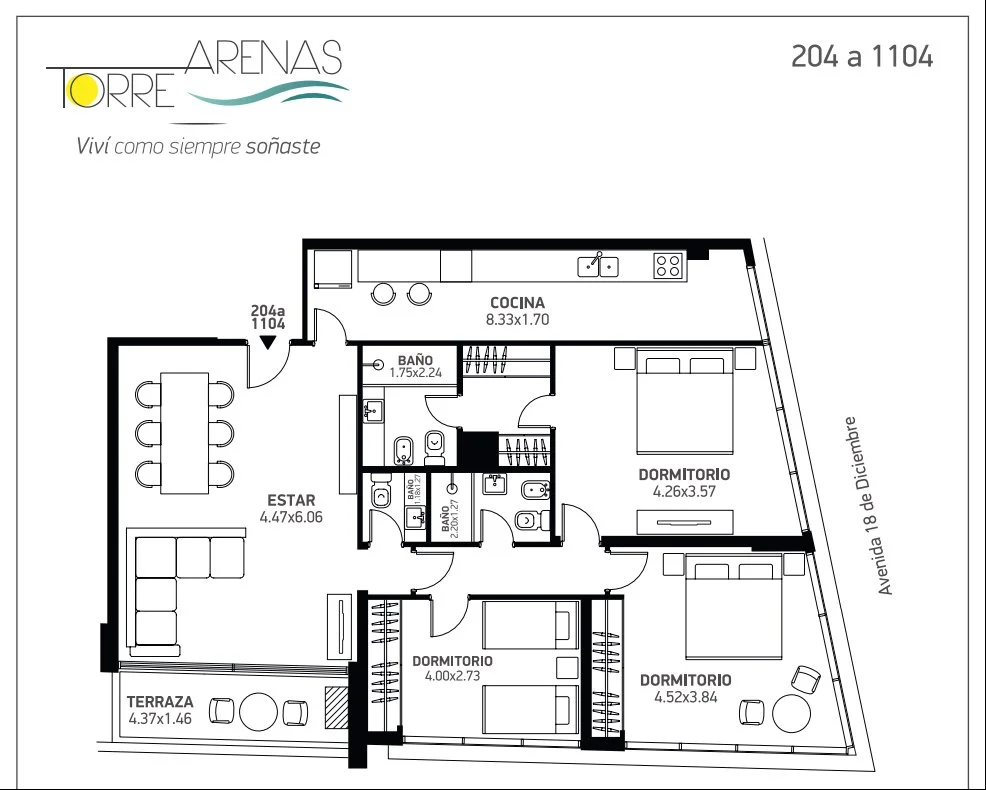 Más de 1.700 m² de amenities: piscina panorámica, solárium, hidromasajes, gimnasio, barbacoas, salón de fiestas, laundry y espacios verdes para niños.