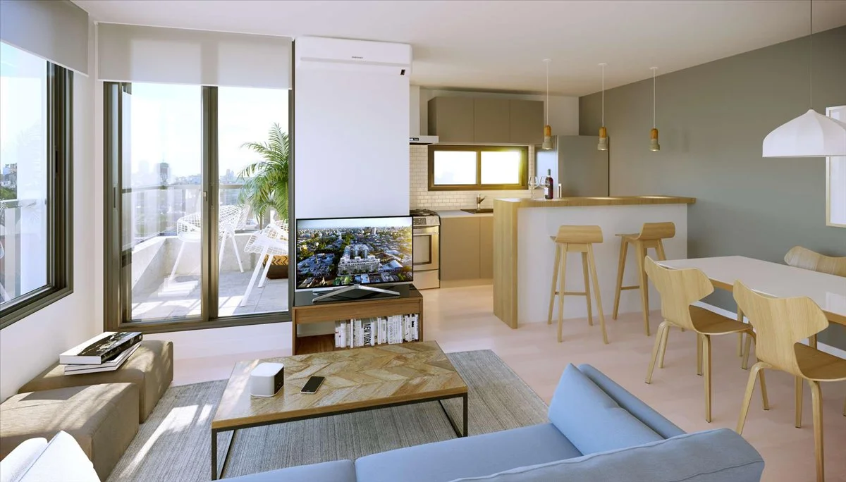 La torre proyectada en Régimen de Propiedad Horizontal estará desarrollada mediante un volumen edificado con amplia fachada a la calle La Paz, orientación Norte, lo que garantizará un asoleamiento e iluminación natural durante todo el día al conjunto. Al interior de la manzana este volumen se articula con las nuevas construcciones linderas logrando una integración de sus espacios exteriores y permitiendo a las unidades interiores con orientación Este-Oeste disfrutar de la calma del patio central. Unidades de 2 y 3 dormitorios con parrilleros individuales. APARTAMENTO 2 DORMITORIOS CON PATIO DE 93m2 EN TRES CRUCES.