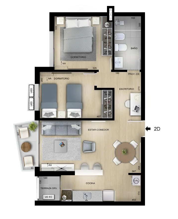 Unidades de 1,2 y 3 dormitorios disponibles.