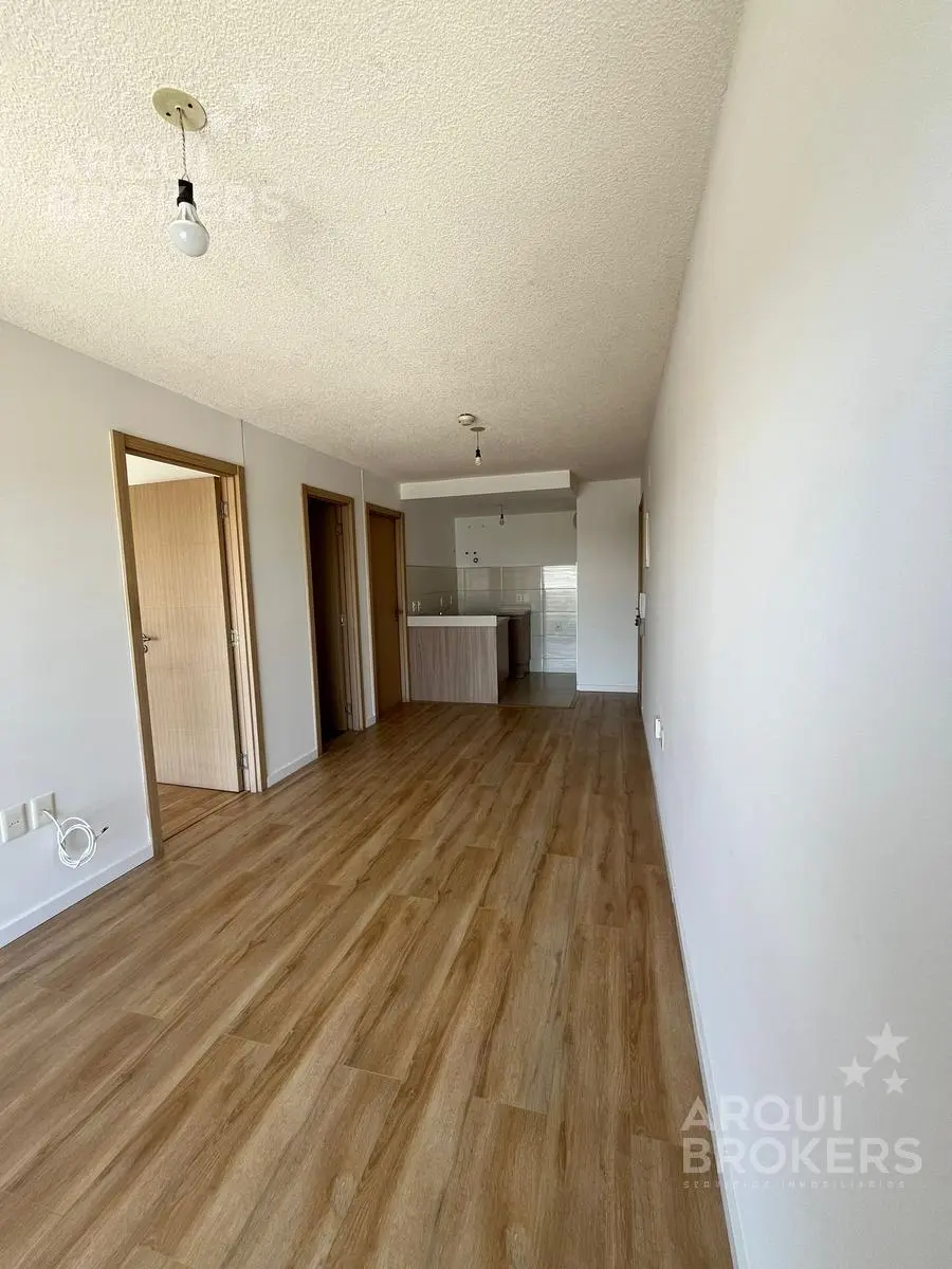 Living comedor con terraza, cocina integrada con placares, 2 dormitorios y 1 baño.