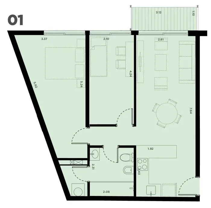 Sus amplias aberturas aseguran gran iluminación natural y cuentan con cortinas de enrollar ya instaladas. Cocina equipada con muebles de calidad y mesada de cuarzo. Los pisos vinílicos tipo madera aportan calidez y durabilidad, mientras que las terminaciones y materiales elegidos garantizan una estética moderna y de fácil mantenimiento.