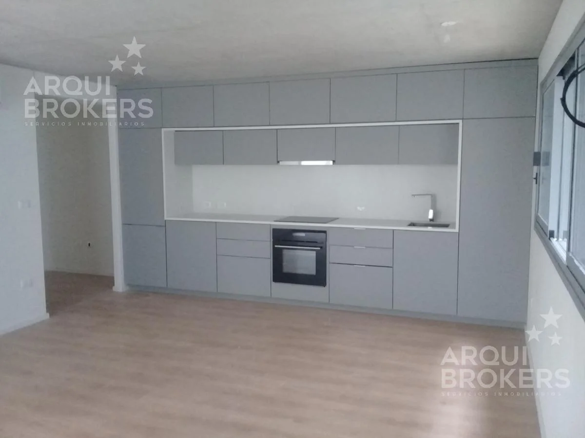Living comedor con terraza, cocina integrada, 2 dormitorios, 1 baño.