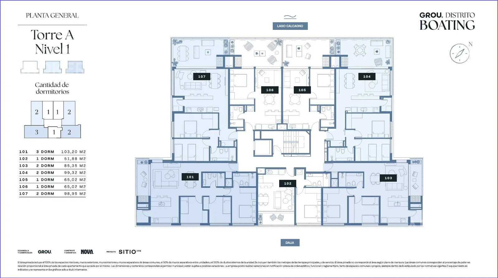 Garajes opcionales desde U$S 18.000 descubiertos y U$S 20.000 techados, no incluidos en el precio.