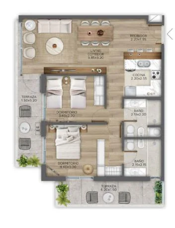 Apartamento de dos dormitorios en venta