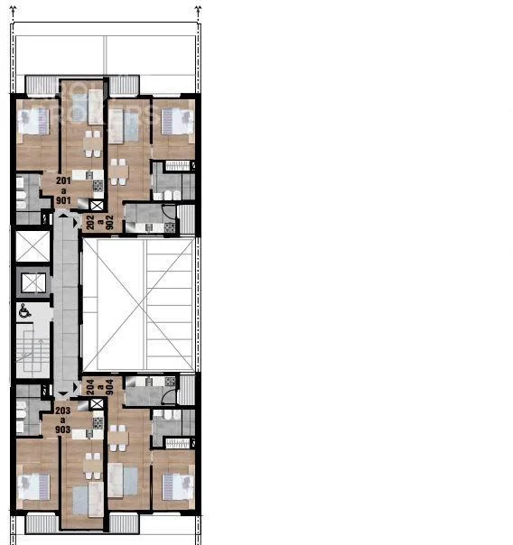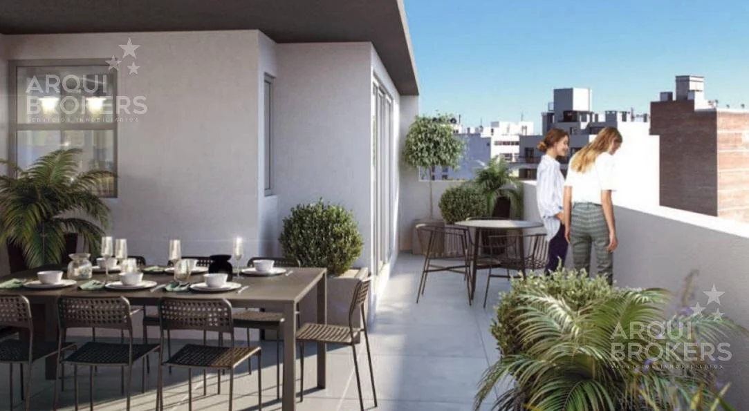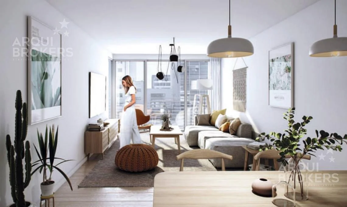 Living comedor con terraza, cocina integrada con placares, 1 dormitorio, 1 baño.