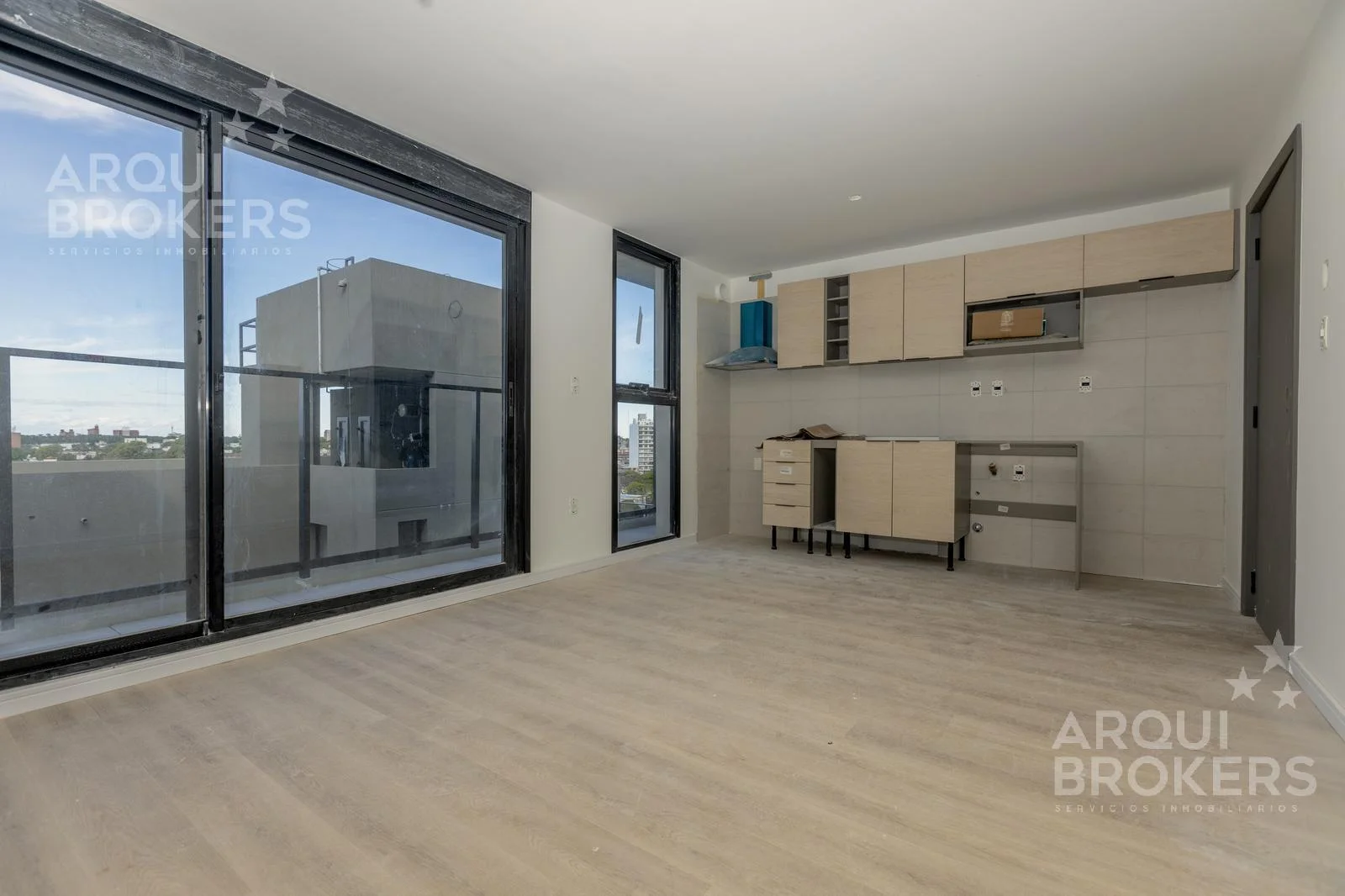 Living comedor con terraza al frente, cocina integrada con placares, 1 dormitorio, 1 baño.