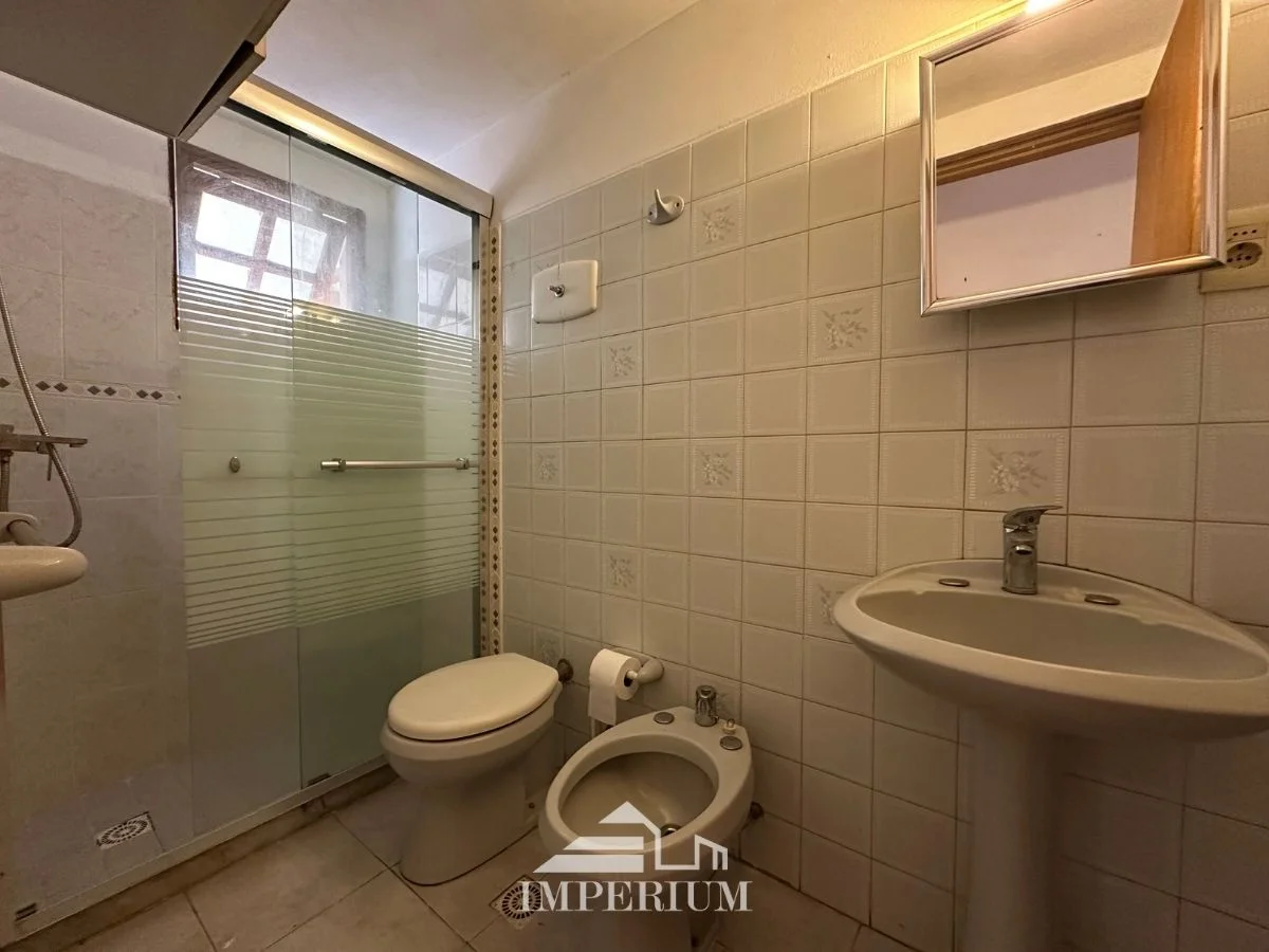 Baño Completo: Moderno, con mampara de vidrio y placard.