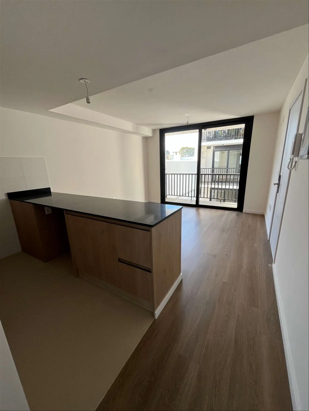 1 dormitorio con persianas. Baño amplio. Cocina abierta con lugar para lavarropa.