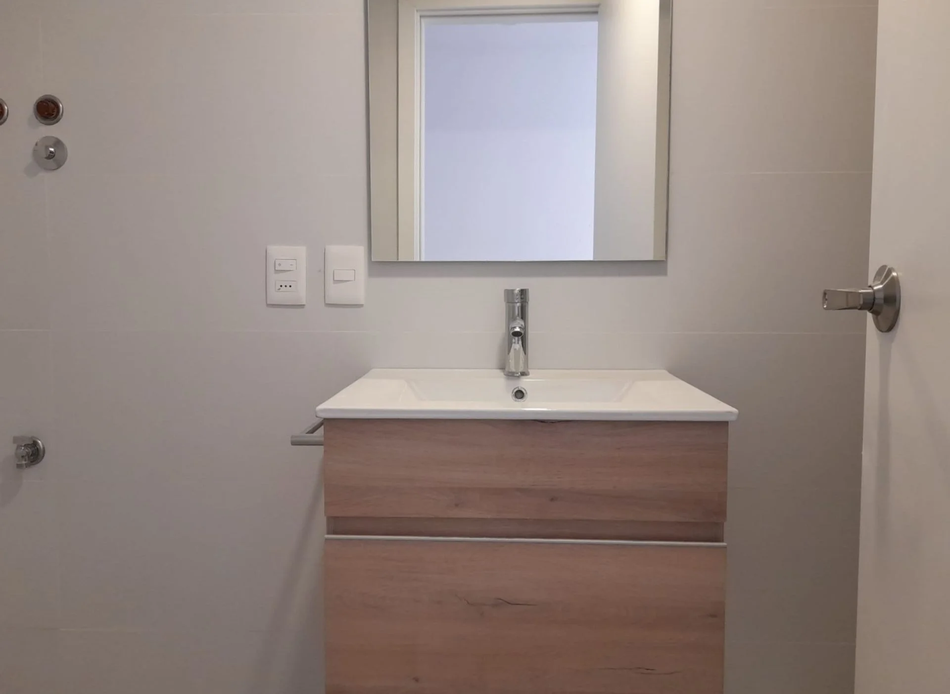 Un dormitorio, baño completo de buen tamaño con excelente calidad en sus terminaciones.