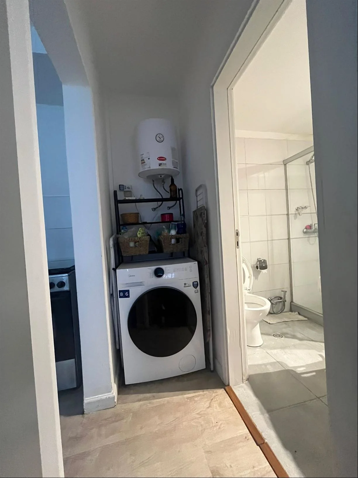 Baño completo con mampara, conexión para lavarropas y calefón.