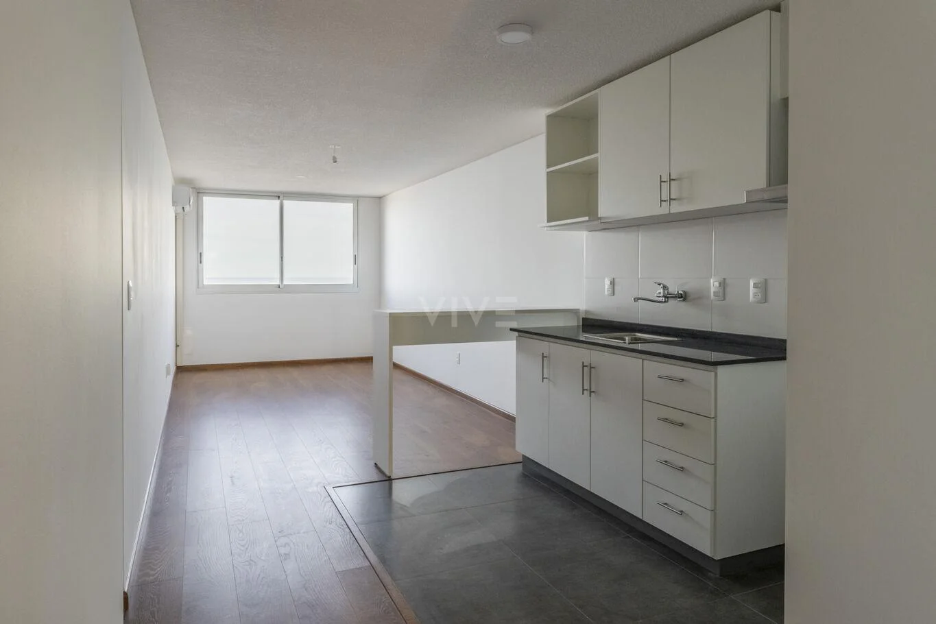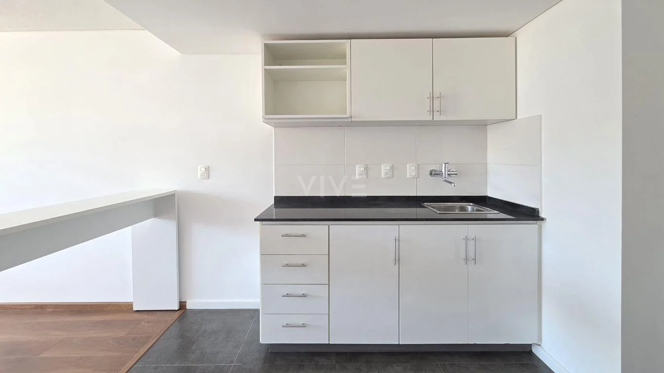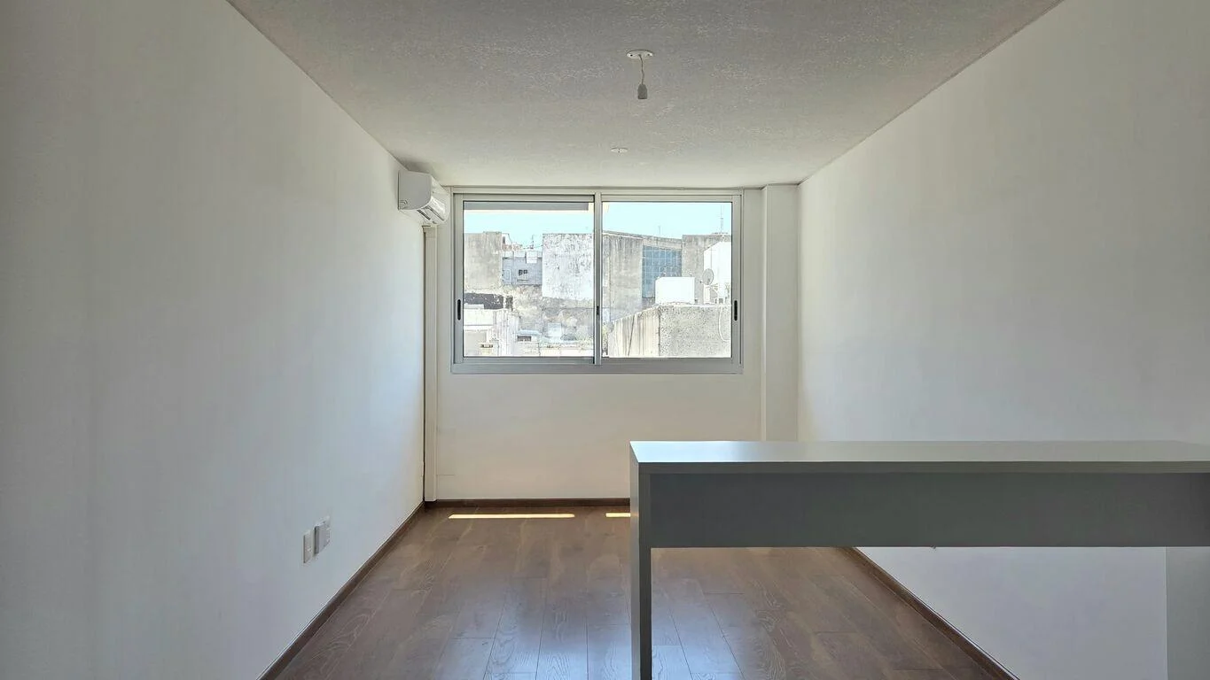 Living comedor al Norte con aire acondicionado y cocina integrada con aéreo y barra desayunadora.