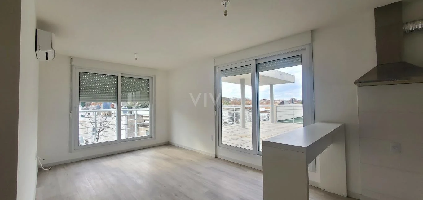 Living comedor al frente con AA, orientación Norte y salida a amplia terraza de uso exlusivo.
