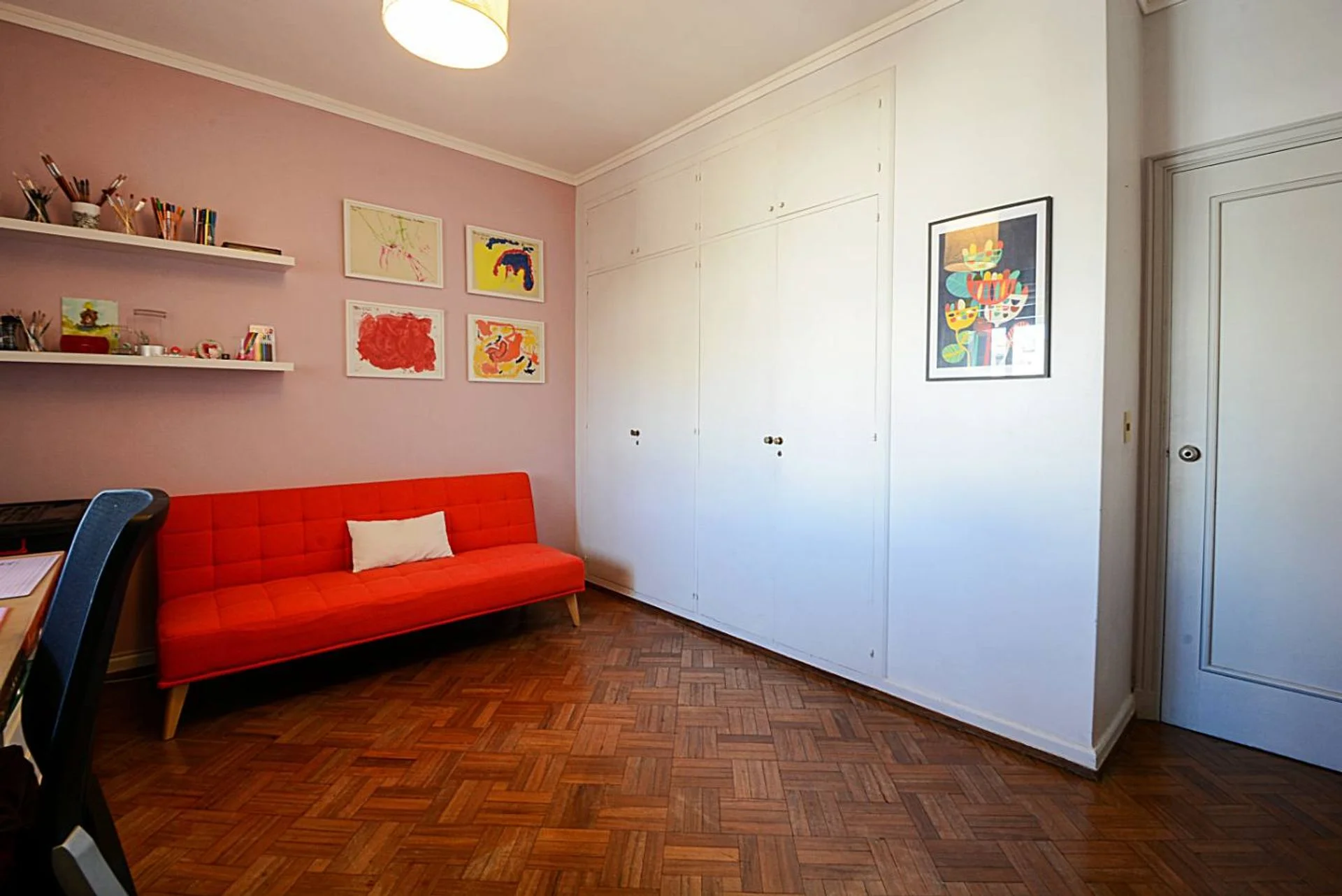 Cuenta con dos dormitorios principales con placares, y un tercer dormitorio o servicio con baño propio y entrada directa al apartamento, ideal para estudio.