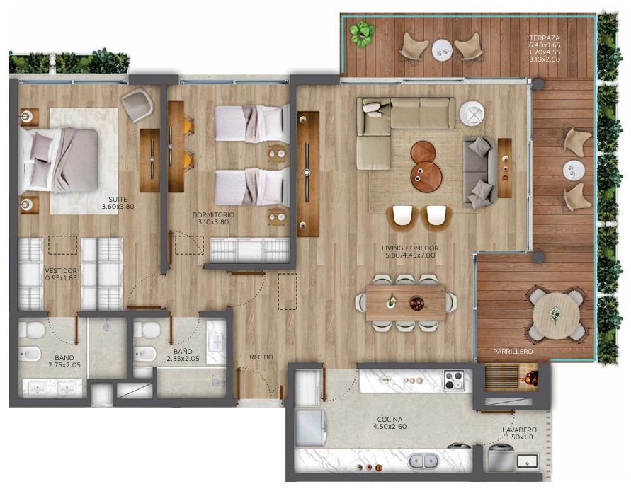 Metraje: 115m2 cubiertos + 27m2 de terraza.