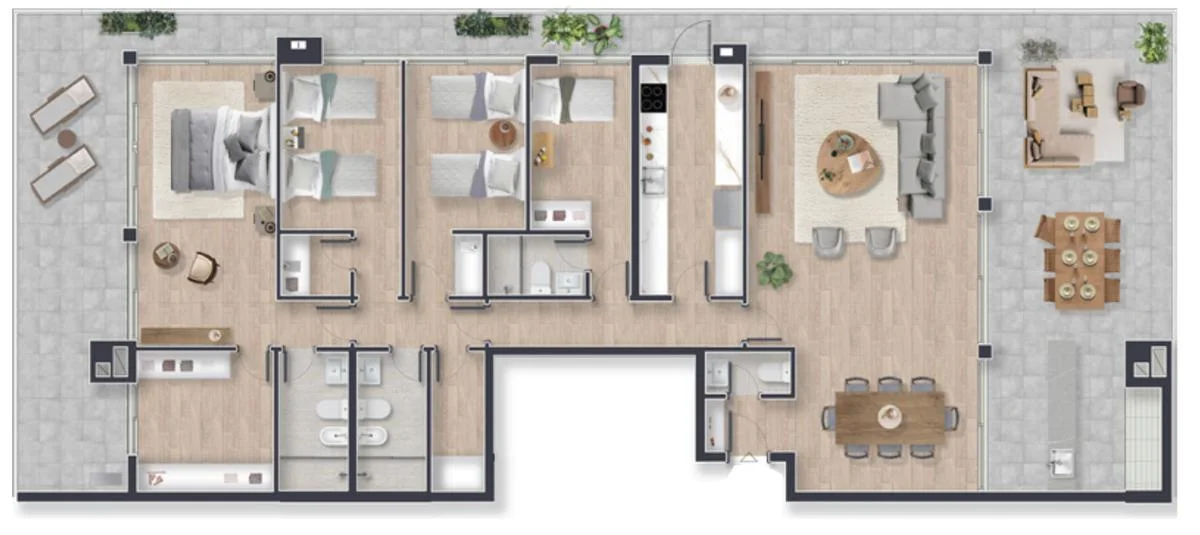 Increíble complejo proyectado en 4 torres, desarrolladas en distintas etapas, la primera de 4 pisos con apartamentos de 2, 3 y 4 dormitorios con parrillero propio. Ubicado en Carrasco a pasos de San Nicolás y Los Olivos, de fácil acceso y a pocas cuadras de rápidas vías hacia al centro y salida hacia el este. A pocos minutos del Aeropuerto, Zona América, rodeado por prestigiosos colegios, cercano a elegantes clubes deportivos y a todos los servicios de Carrasco.