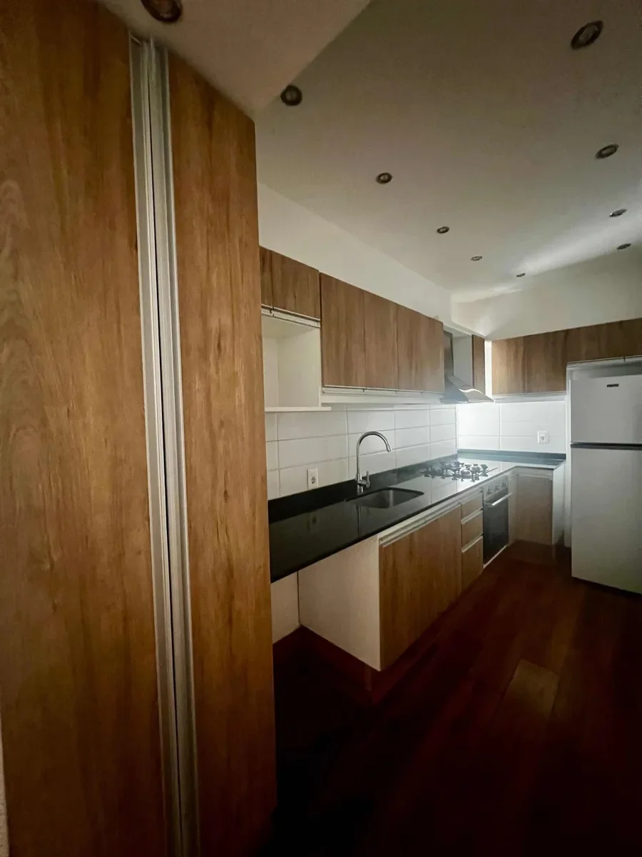 Cocina equipada con horno empotrado, anafe y campana extractora