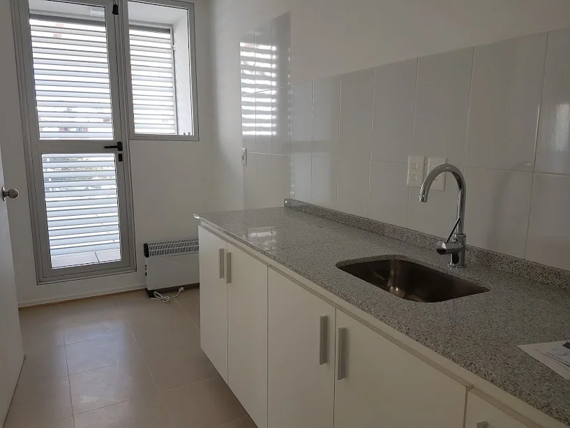 Cocina definida, placares aéreos y bajo mesada, al frente, se comunica con terraza lavadero.